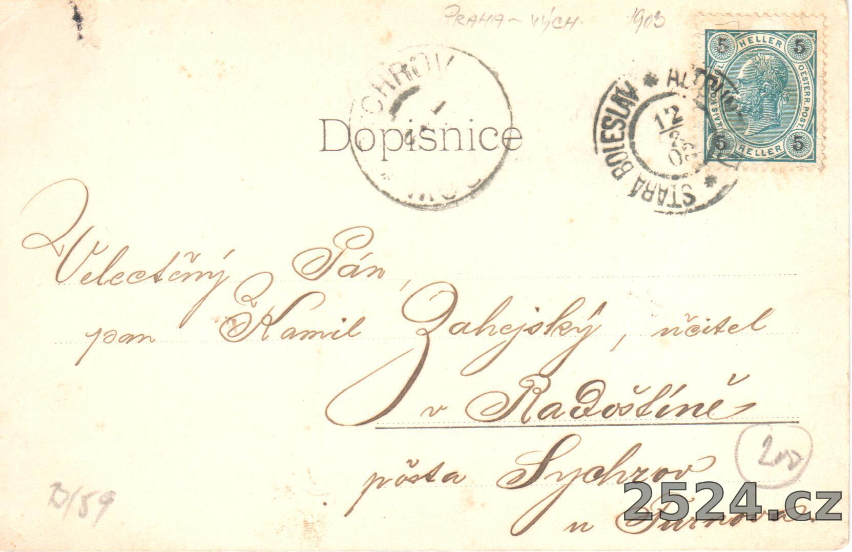 Popis: prošlá 1905, z textu na pohlednici "..... jsem člověk v blahu a starostech tonoucí se zmítající. Odtud se vysvětluje náhlý můj odjezd......"
