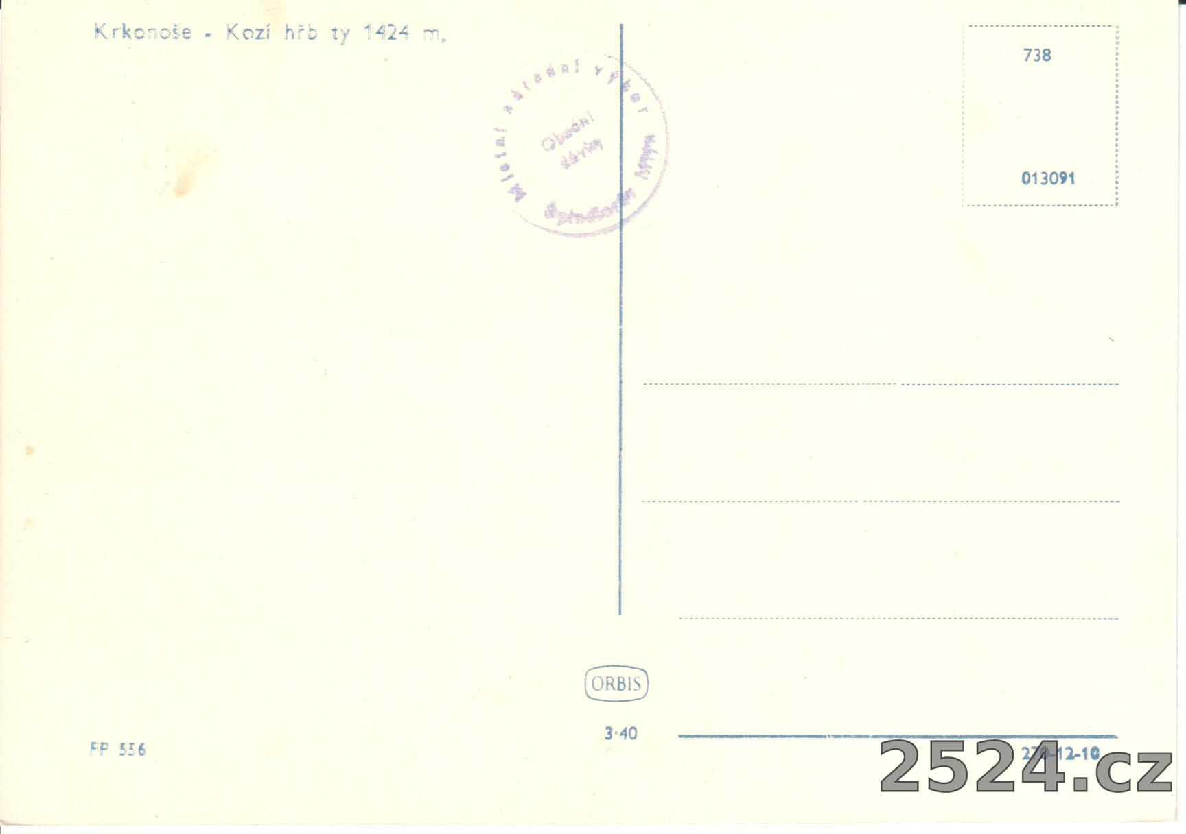 Popis: neprošlá; razítko Místní národní výbor, Obecní dávky, Špindlerův Mlýn