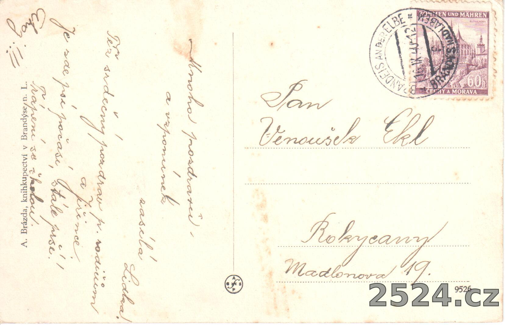 Vydavatel: A. Brázda, knihkupectví v Brandýse n. L.