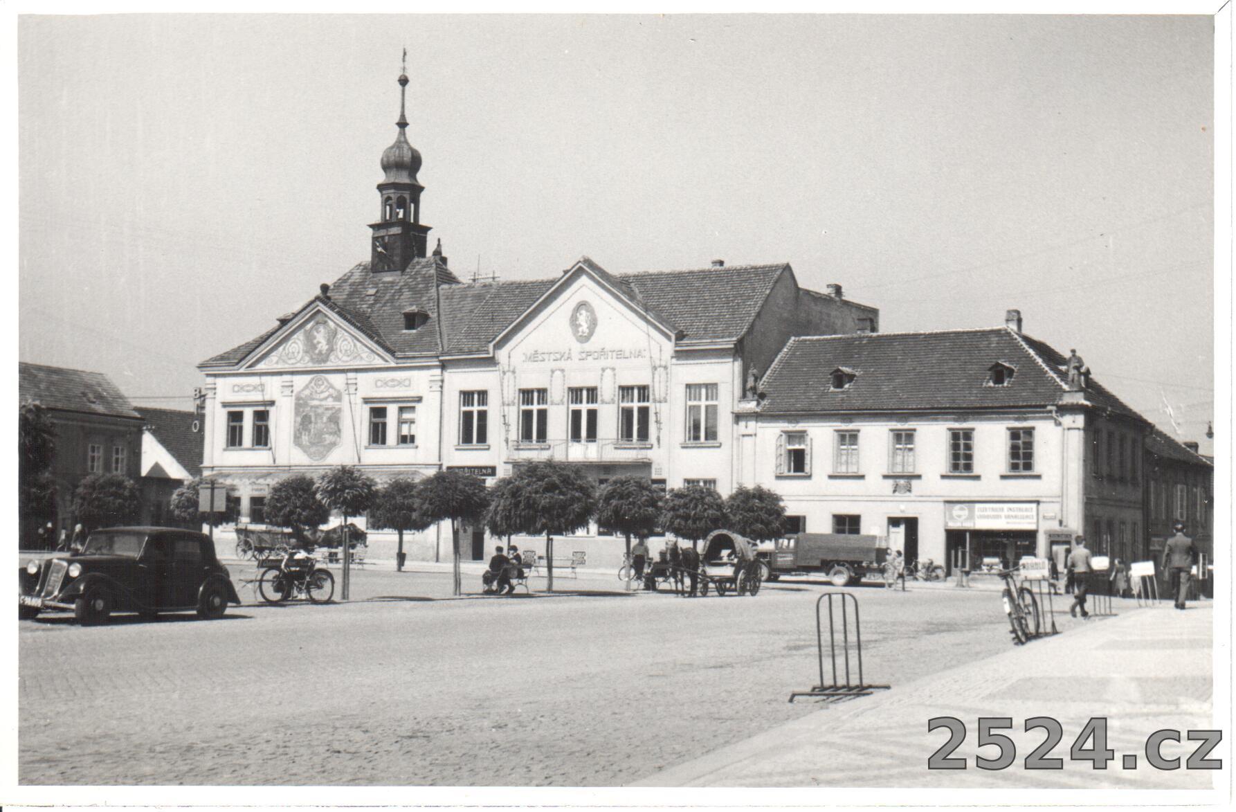 Popis: neprošlá; fotografie ručně psané Brandýs nad Labem, náměstí s radnicí