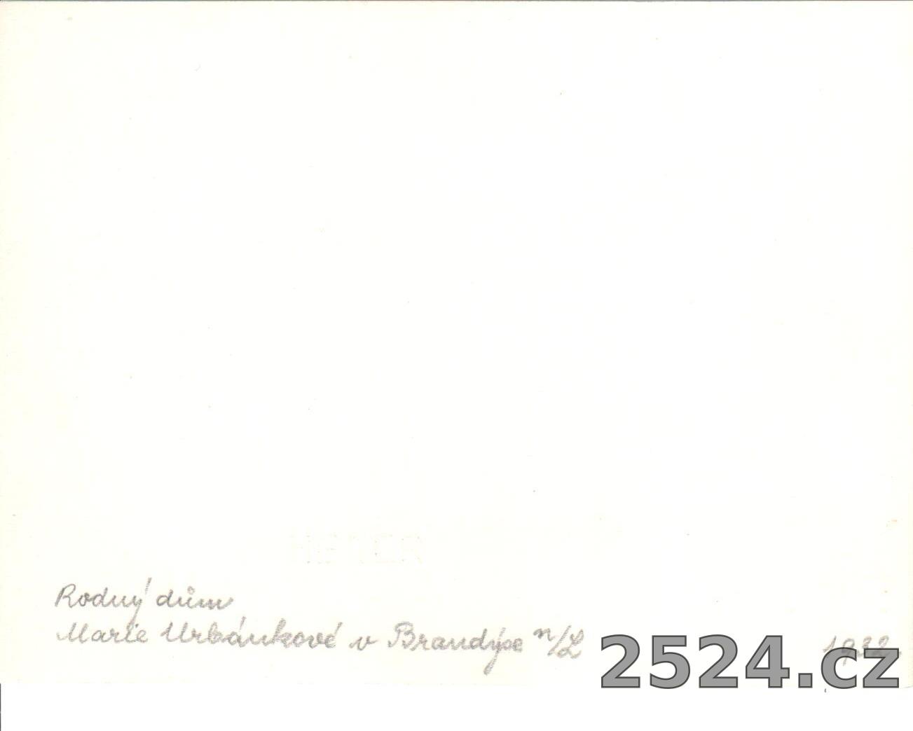Popis: neprošlá; nejde o pohlednici; uveden text Rodný dům Marie Urbánkové v Brandýse n.L. 1932;