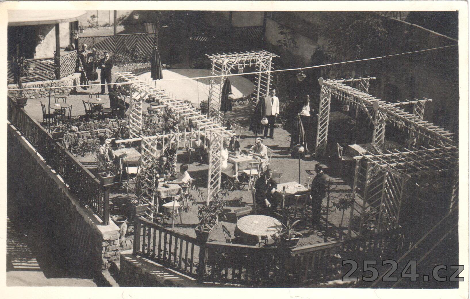 Popis: prošlá 1935; Foto Lehman; dle vyjádření pamětníků jde o Restauraci hotelu Koruna umístěnou ve dvoře;