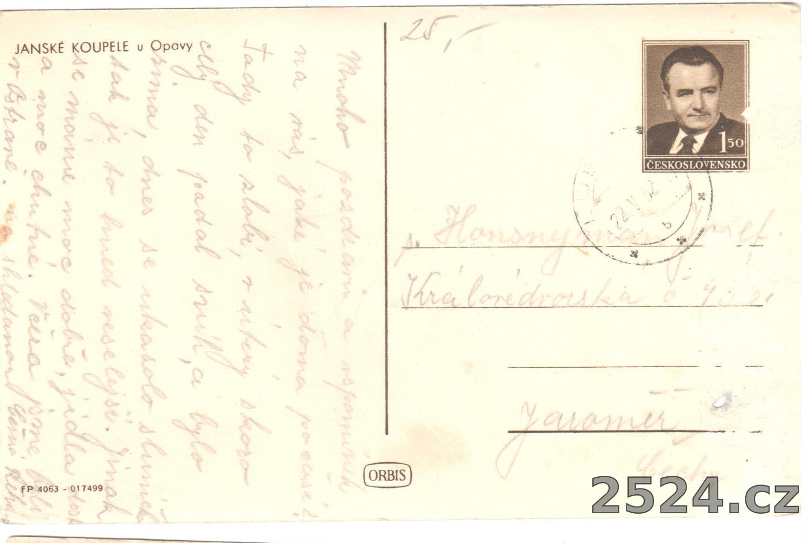 Popis: prošlá; pohlednice s natištěnou známkou