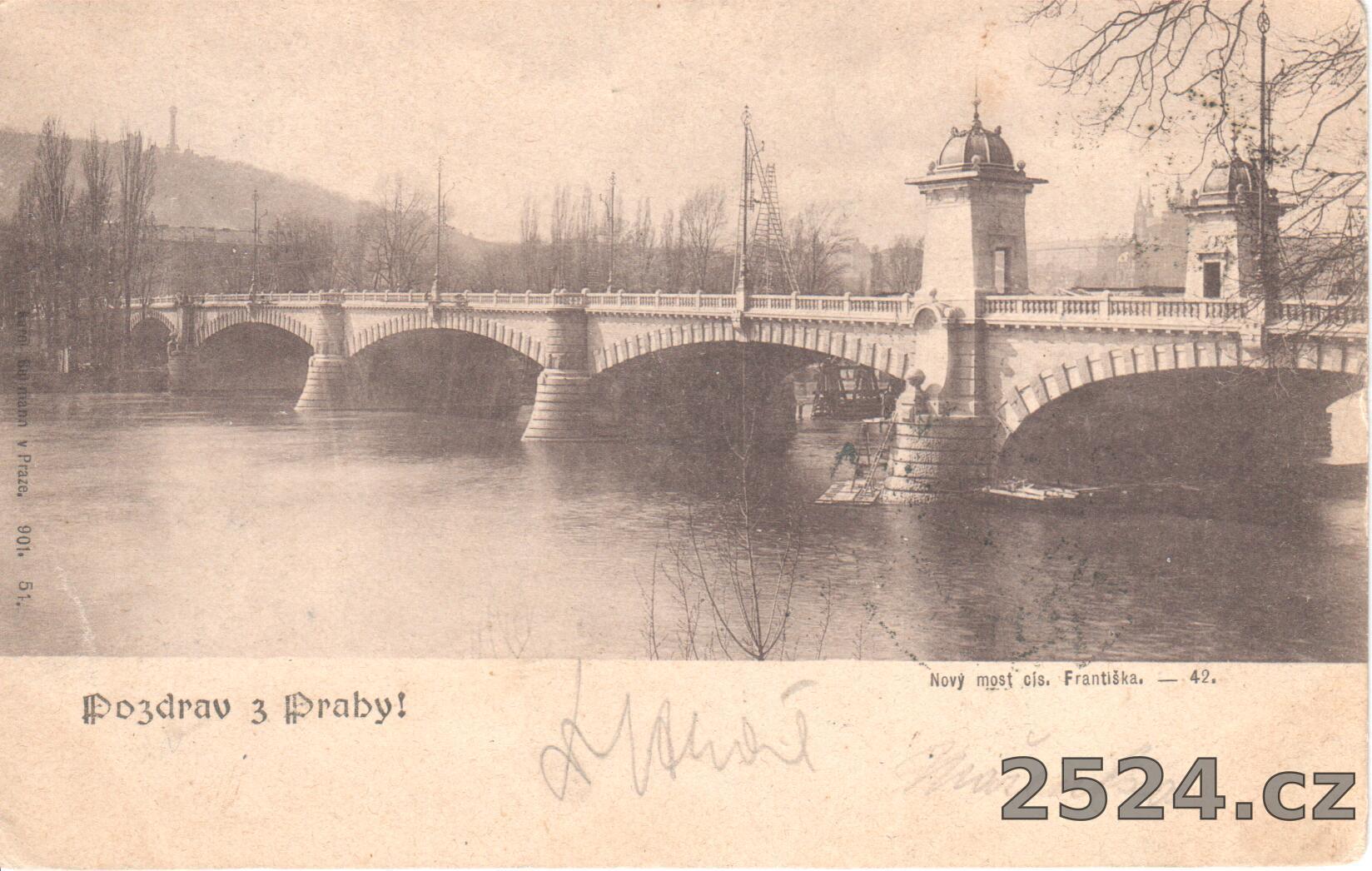 Popis: prošlá 1901; zajimavé je že na pohlednici jsou vidět zbytky lešení a dlouhý žebřík sloužící zřejmě k instalaci světel. dnes Most Legií