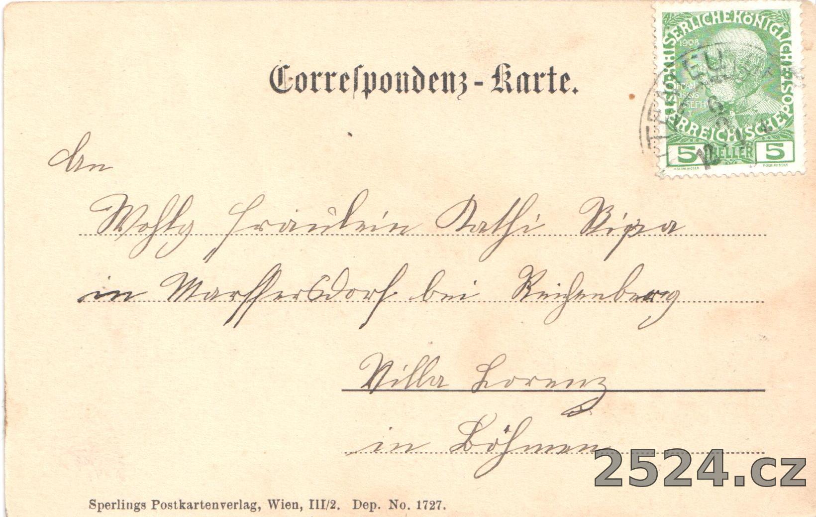 Vydavatel: Sperligs Postkartenverlag, Wien III/2, Dep. No. 1727