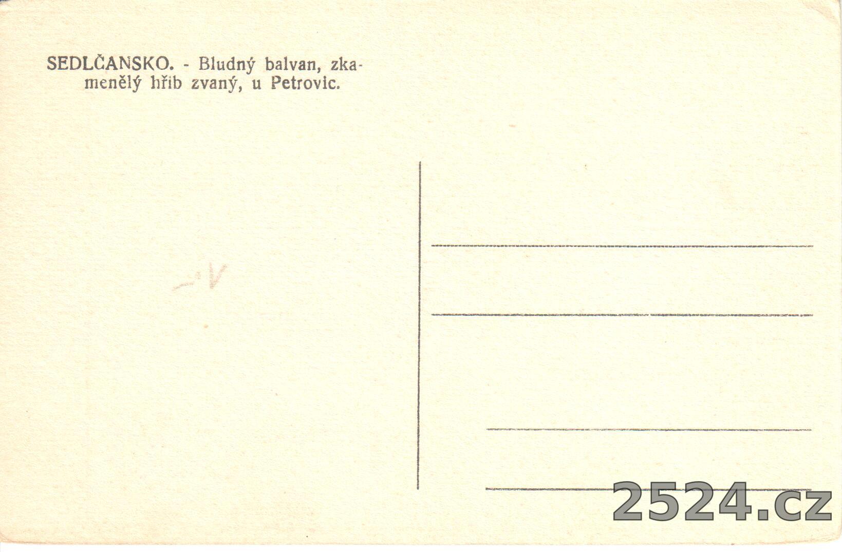 Popis: neprošlá; Sedlčansko, Bludný balvan, zkamenělý hřib zvaný, u Petrovic