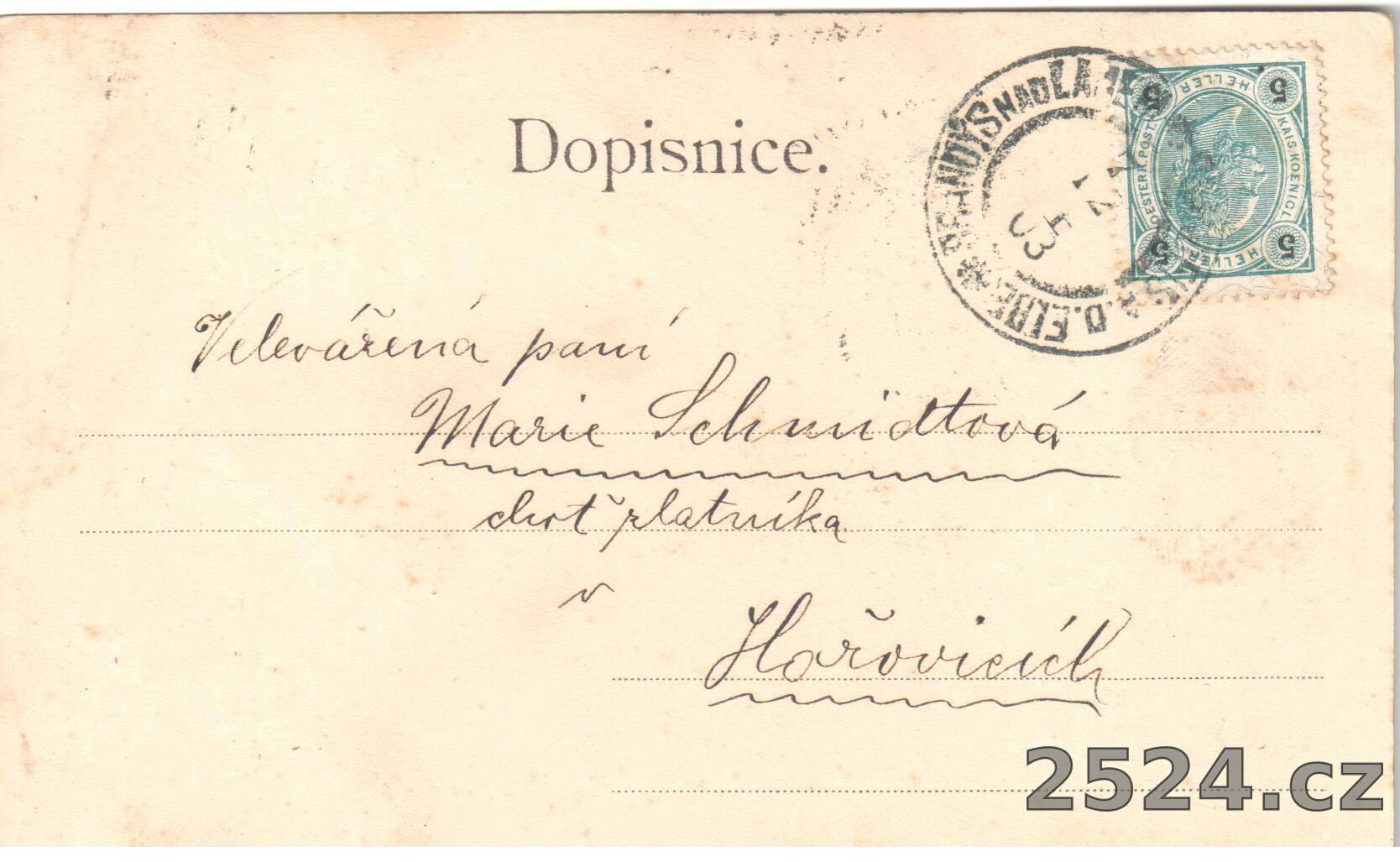 Popis: prošlá 1903; pohled na zámek z mostu na Ostrúvek, motiv
