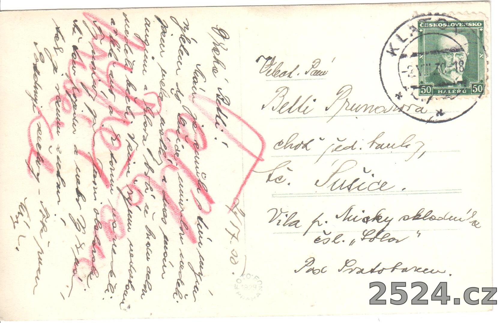 Popis: prošlá 1930; dopisnice klubu čsl. turistů; foto prof. Chládek; Pohled od severu
