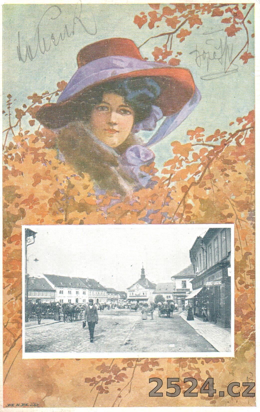 Popis: prošlá 1906; žánrová pohlednice z cyklu čtvero ročních období