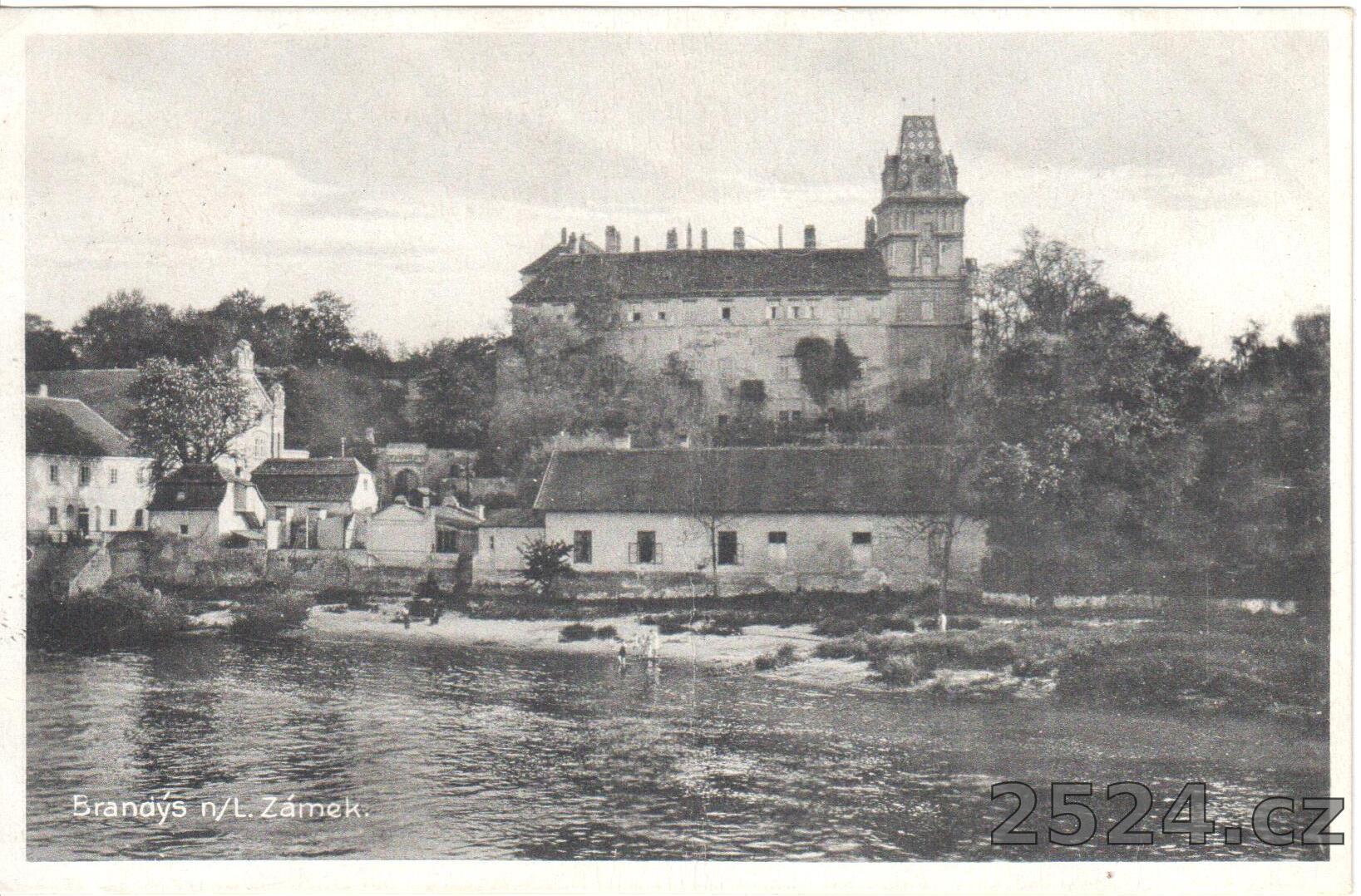 Popis: prošlá; koupající se postavy na písčité pláži pod zámkem....