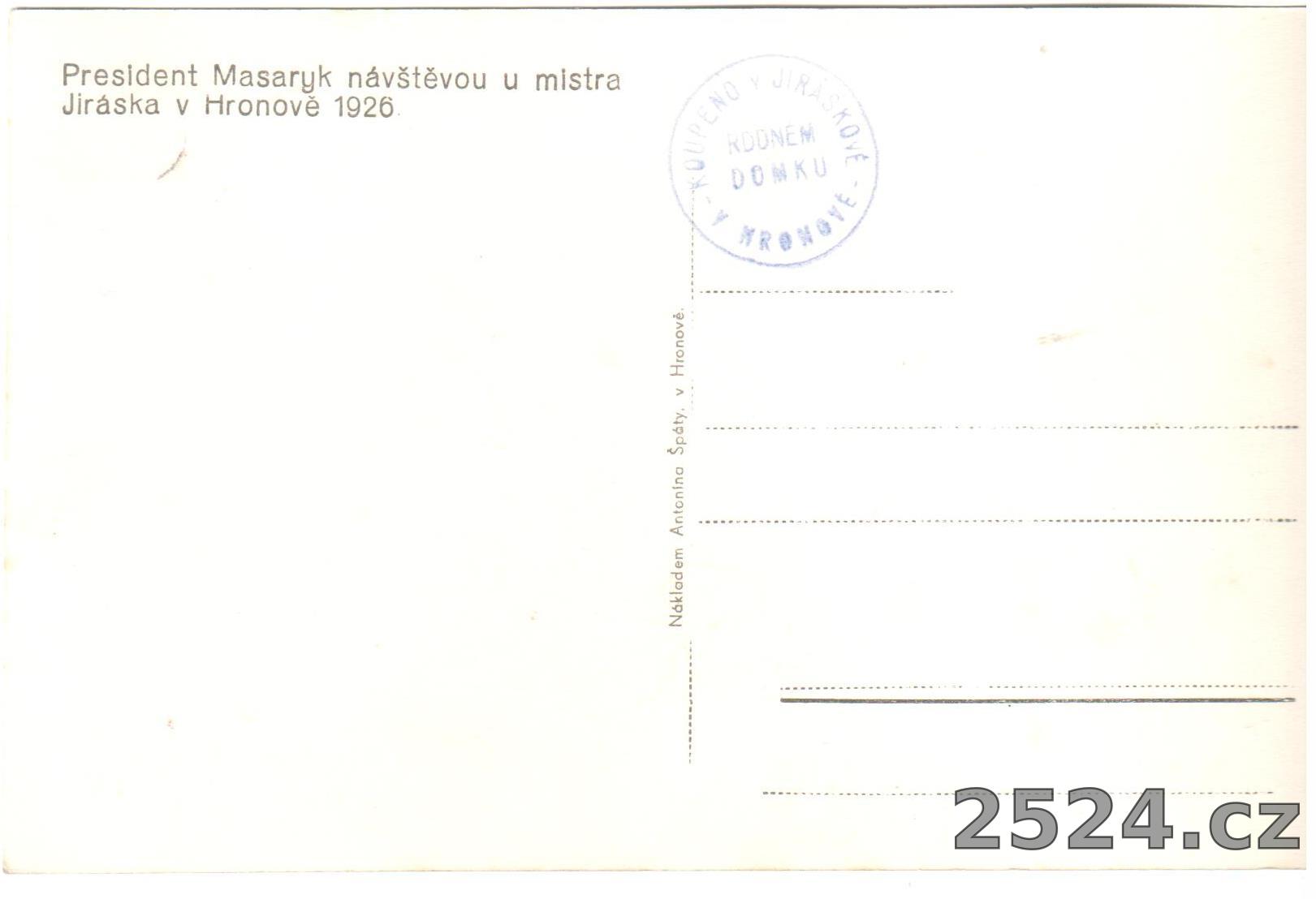 Popis: neprošlá; razítko Koupeno v Jiráskově rodném domku v Hronově