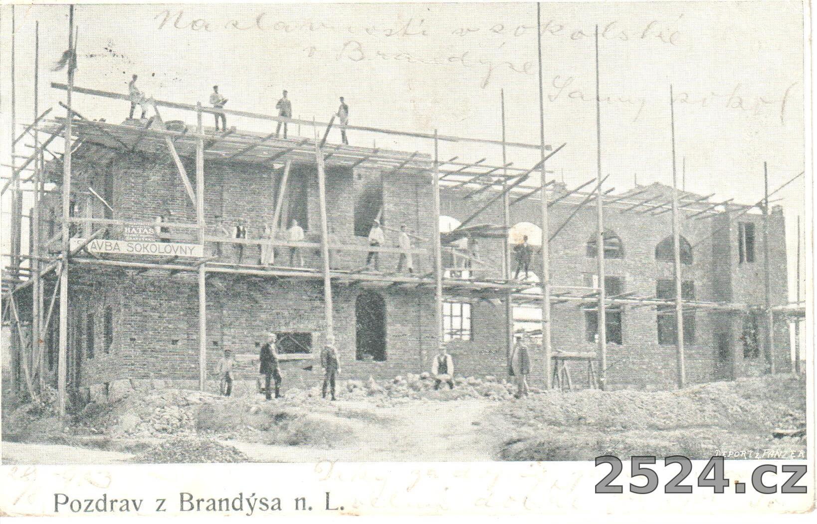 Popis: prošlá 1904; zajímavý pohled na výstavbu sokolovny