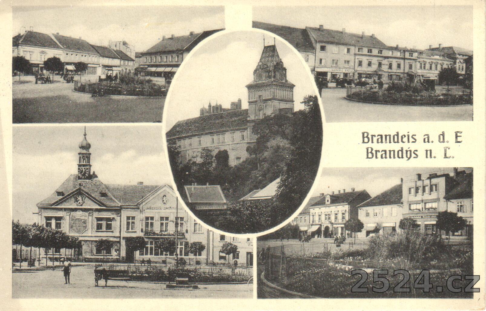 Popis: Pohlednice prošlá v roce 1942, na pohlednici je Zámek, radnice a různé pohledy na náměstí.