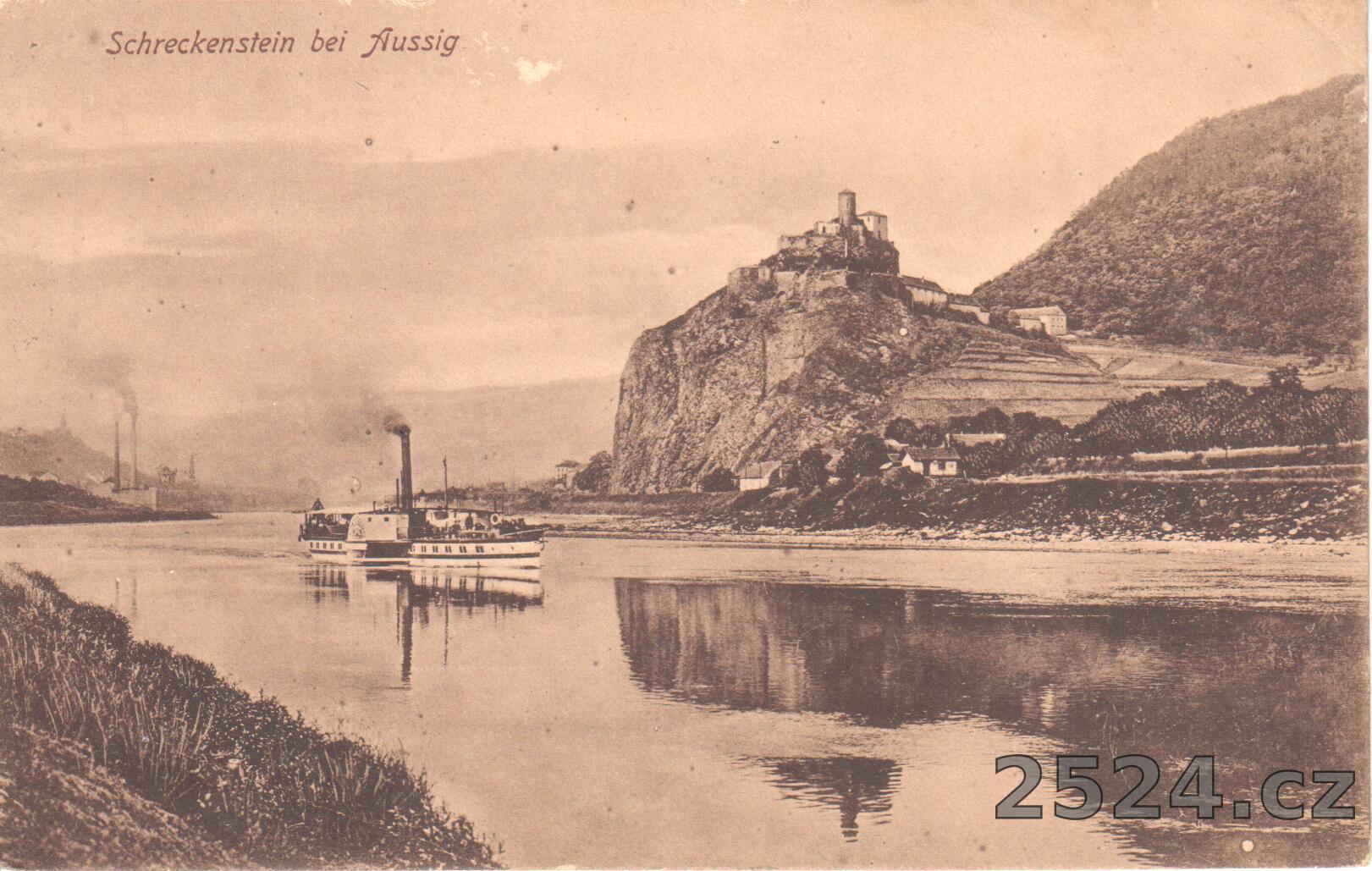 Popis: prošlá; Schreckstein bei Aussig; parník