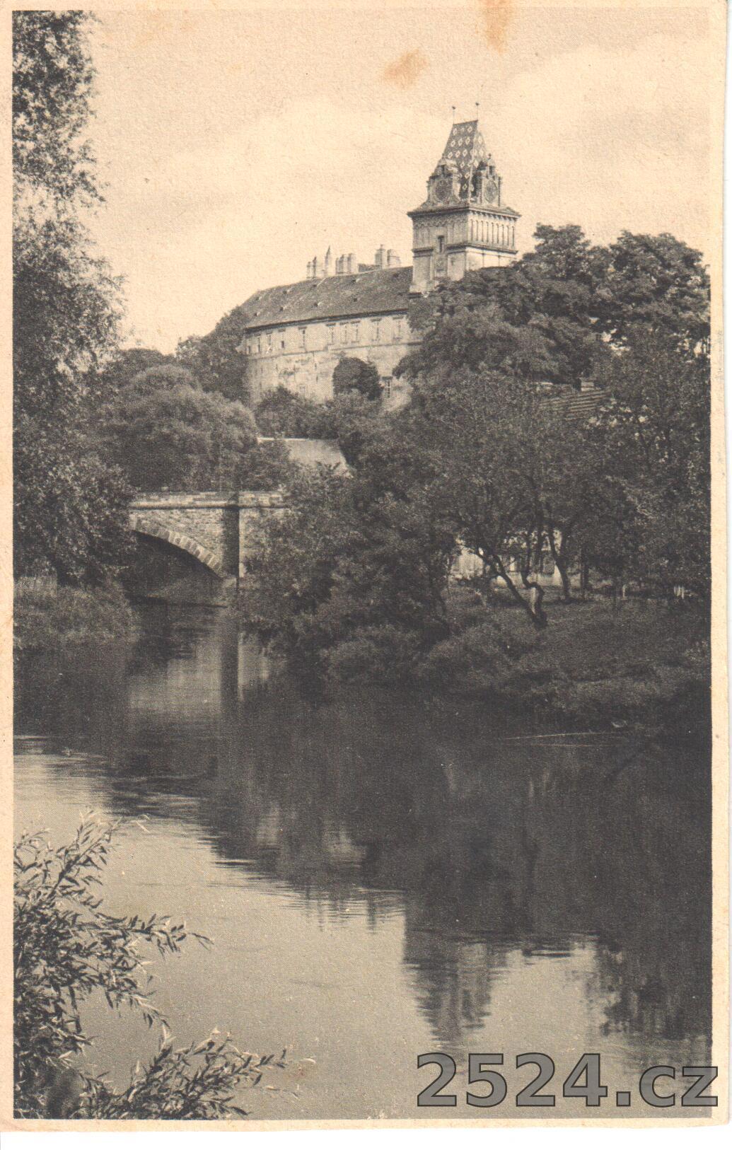 Popis: prošlá 1932; pohled na zámek z Ostrůvku