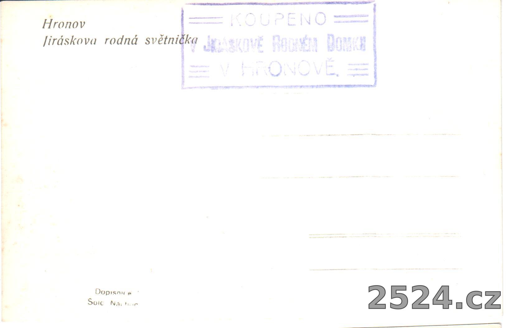 Popis: neprošlá; razítko Koupeno v Jriráskově rodném domku v Hronově