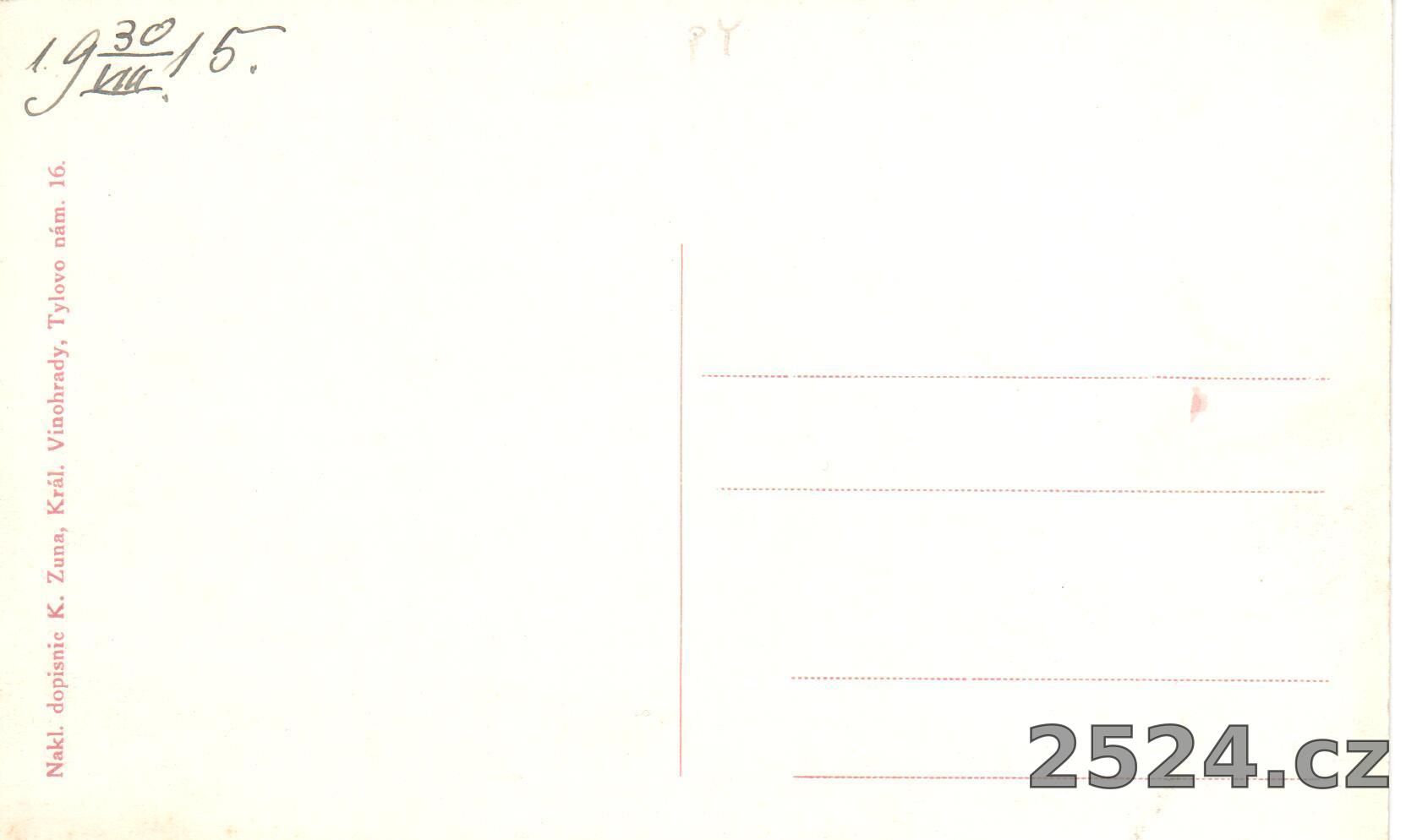 Vydavatel: Nakl. dopisnic K. Zuna Král. Vinohrady, Tylovo nám. 16
