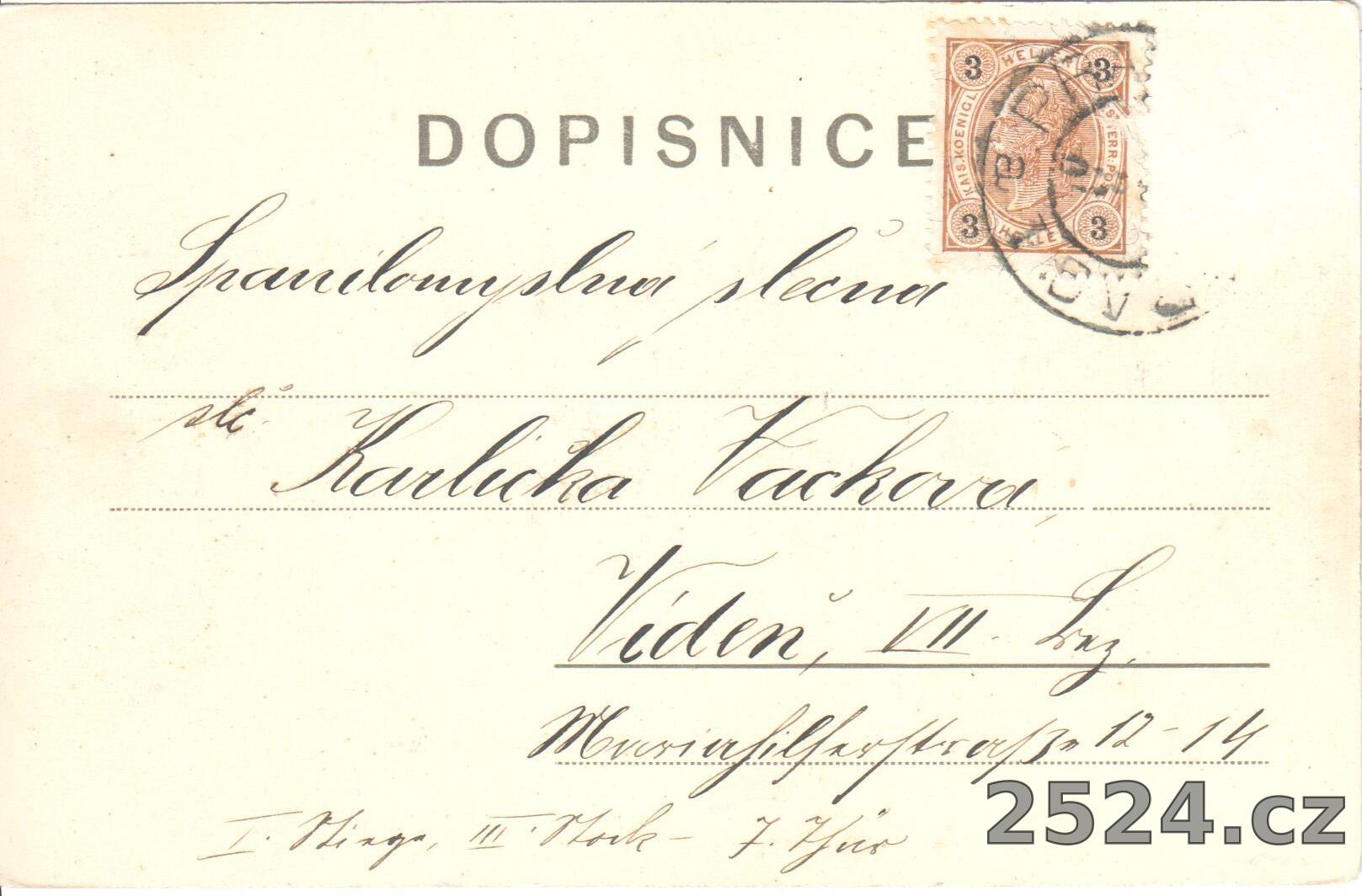 Popis: prošlá 1904; kolorovaná, vydavatel pravděpodobně Karel Bellmann