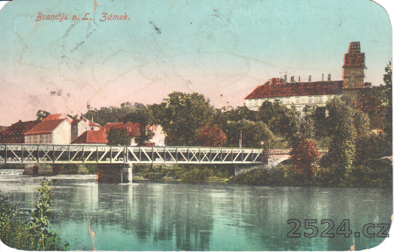 Popis: prošlá; pohled na zámek přes Labe a železný most;