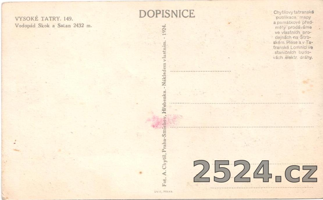 Vydavatel: Fo. A. Chytil Praha-Smíchov, Hřebenka. Nákladem vlastním -1924