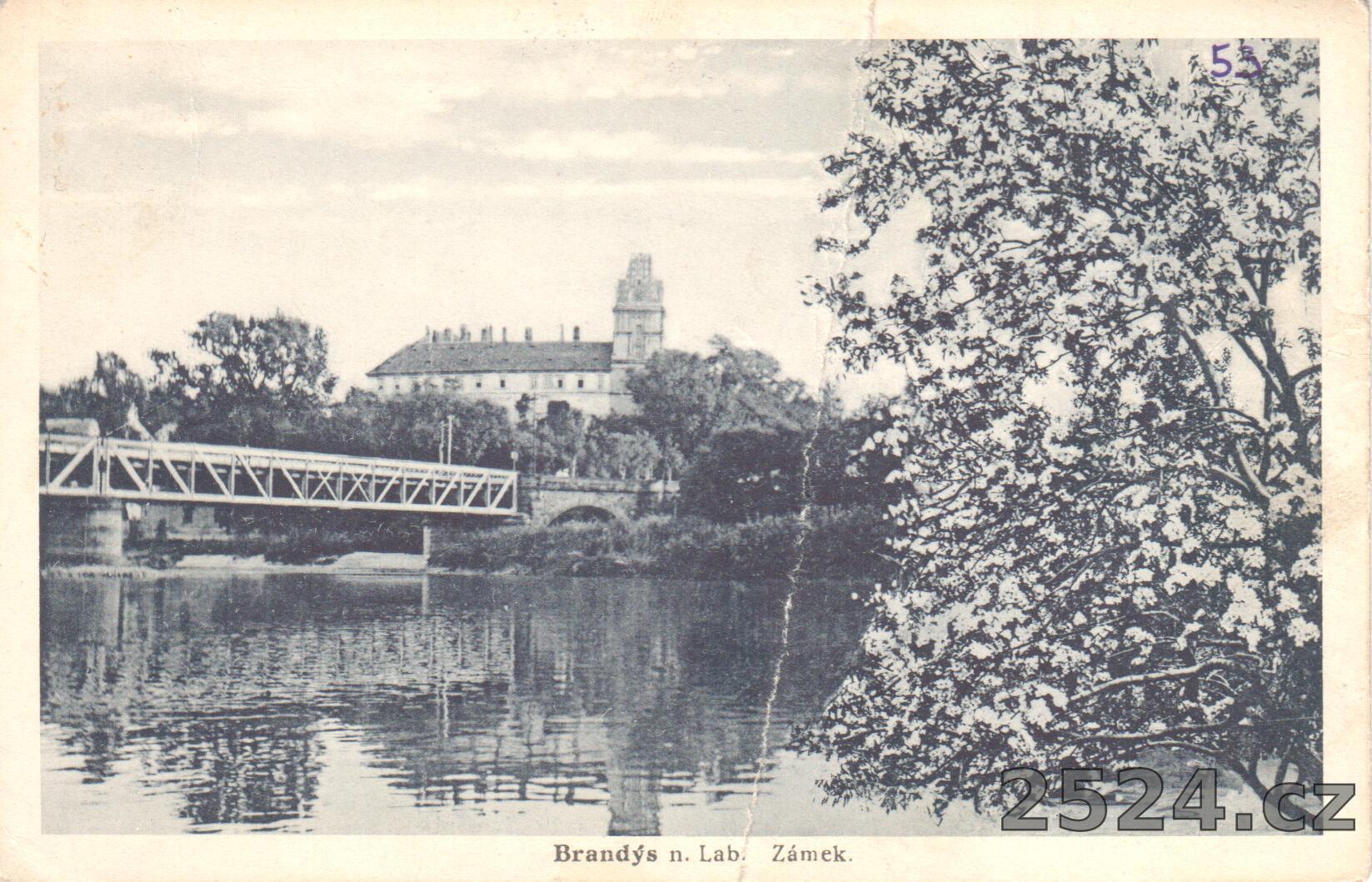 Popis: prošlá; pohled na zámek přes Labe a železný most