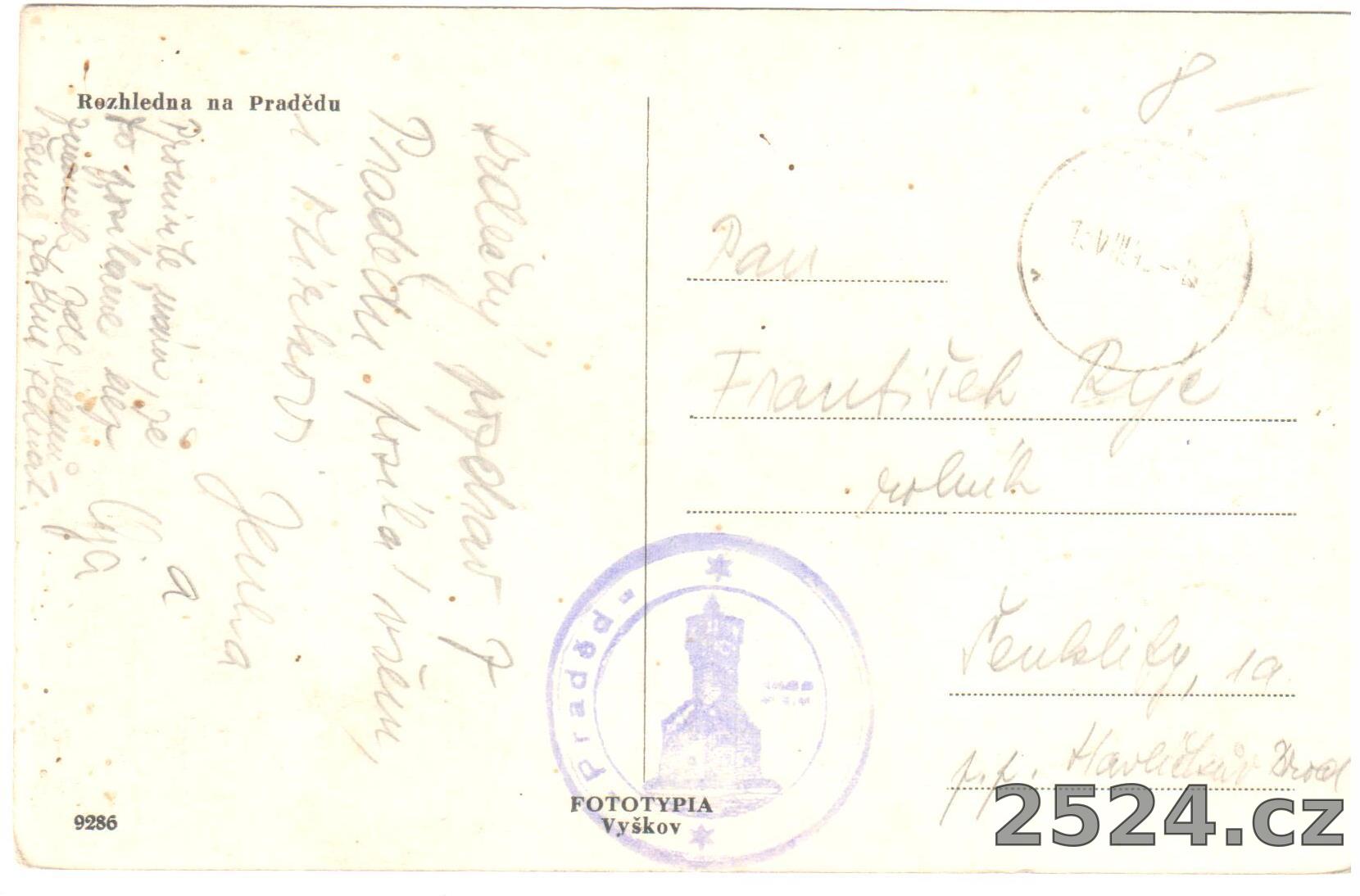 Popis: prošlá; razítko Praděd