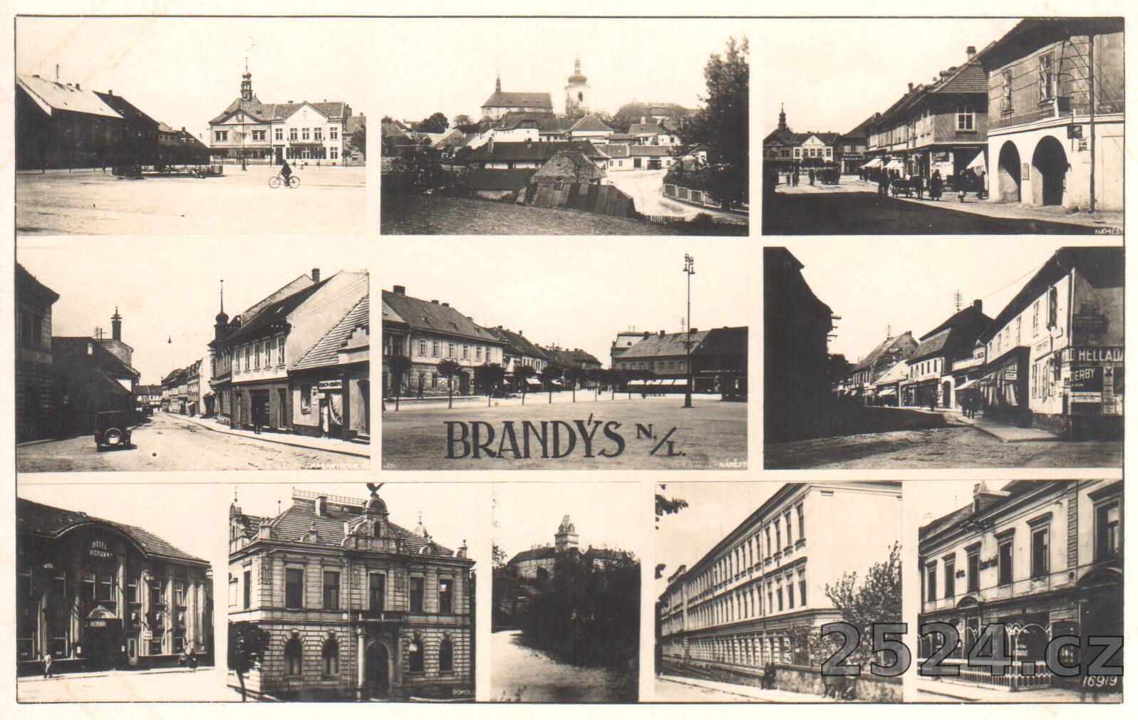 Popis: Okénková pohlednice, obsahuje více fotografických pohledů na Brandýs nad Labem. Pohled na náměstí, Pražskou ulici, Sokolovnu, školu, Korunu, Hostinec U Černého koně..... Pohlednice je neprošlá.