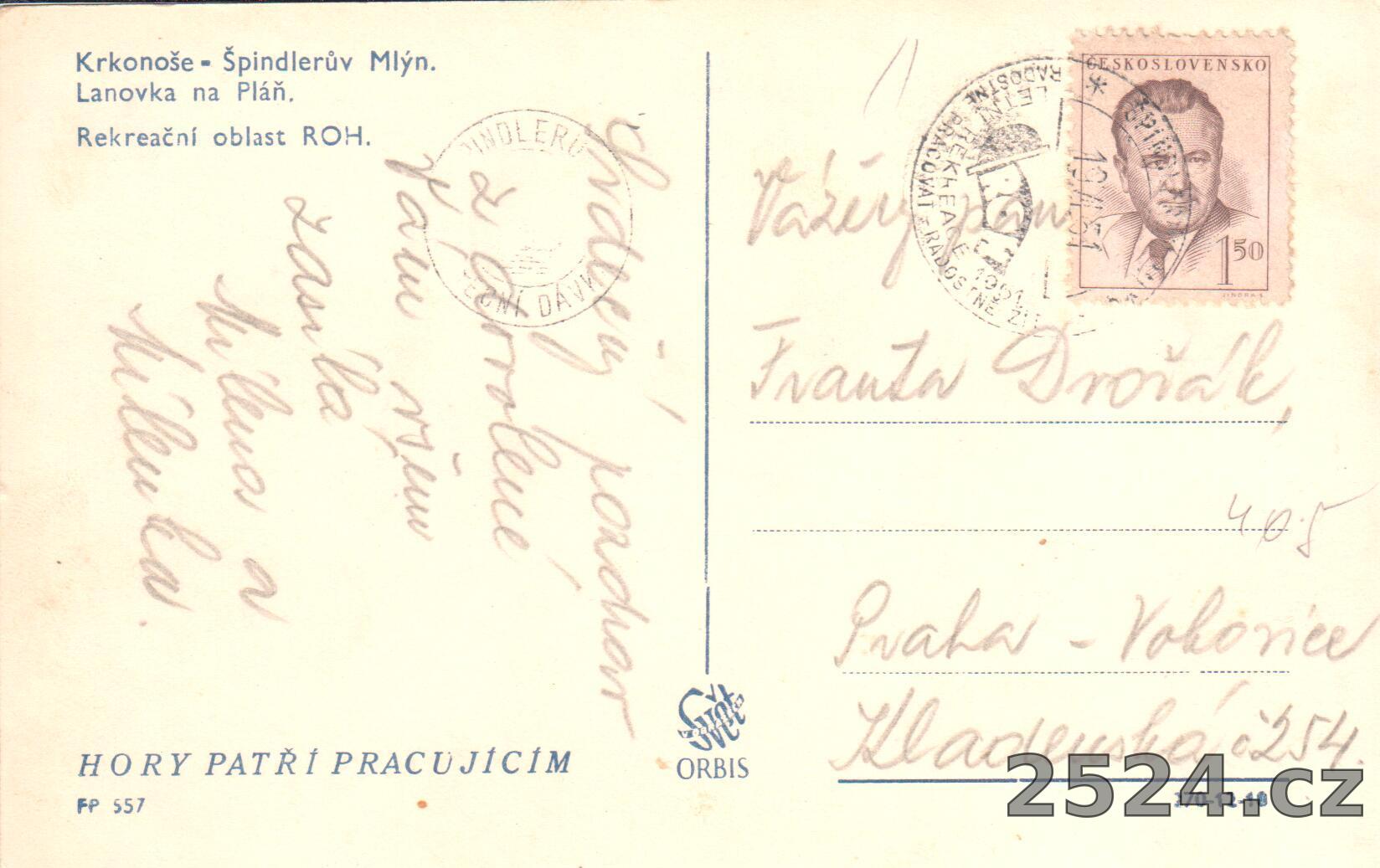 Popis: prošlá; Hory patří pracujícím; Lanovka na Pláň, Rekreační oblast ROH