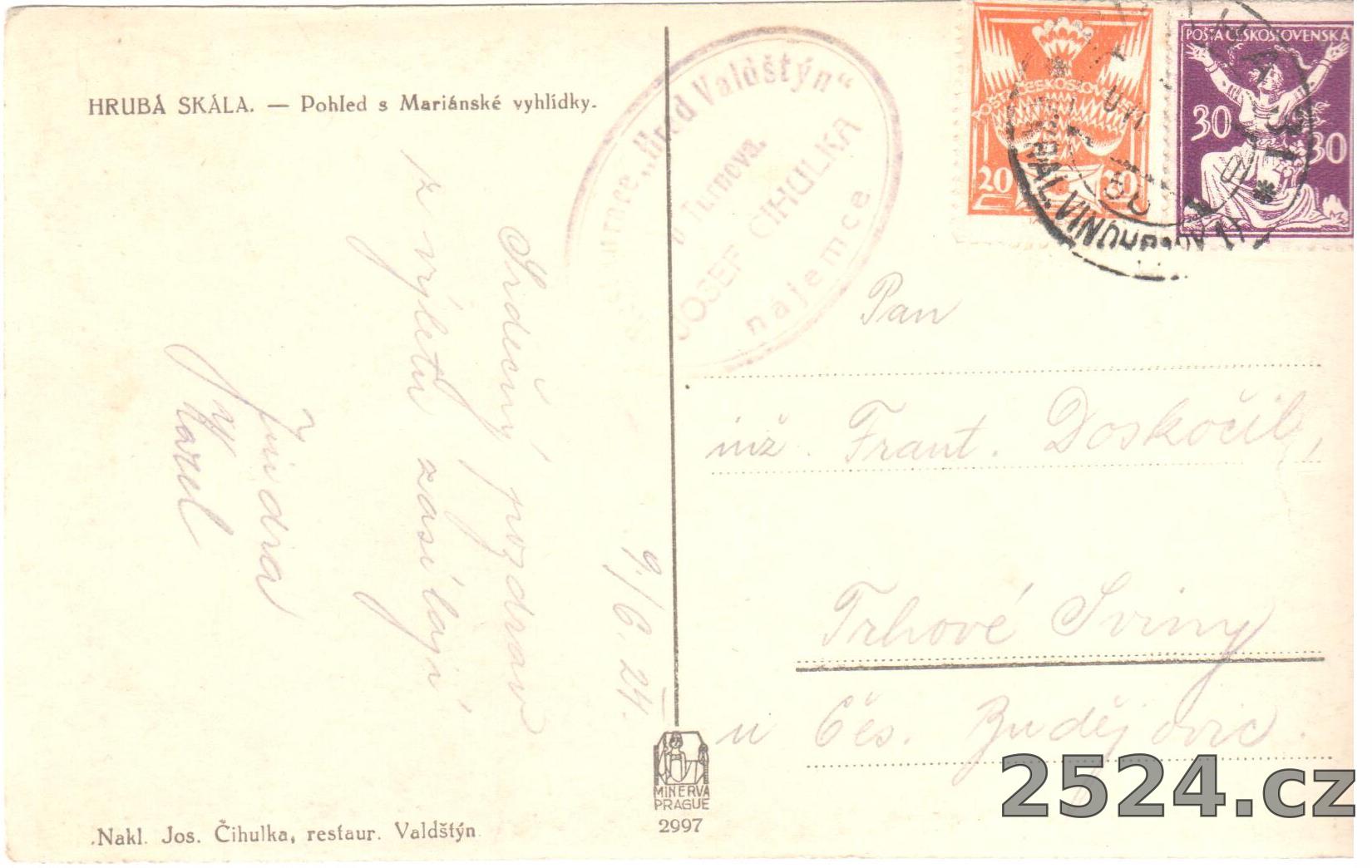 Popis: prošlá 1924; Razítko Restaurace Valdštýn