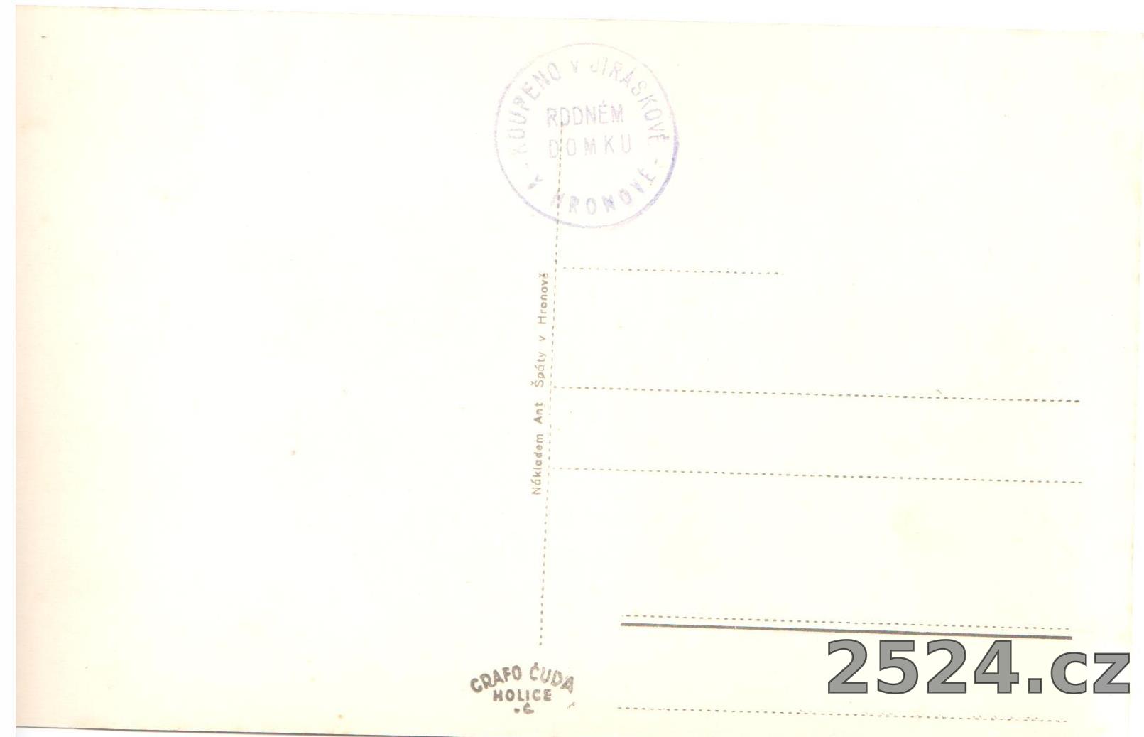 Popis: neprošlá; razítko Koupeno v Jiráskově rodném domku v Hronově