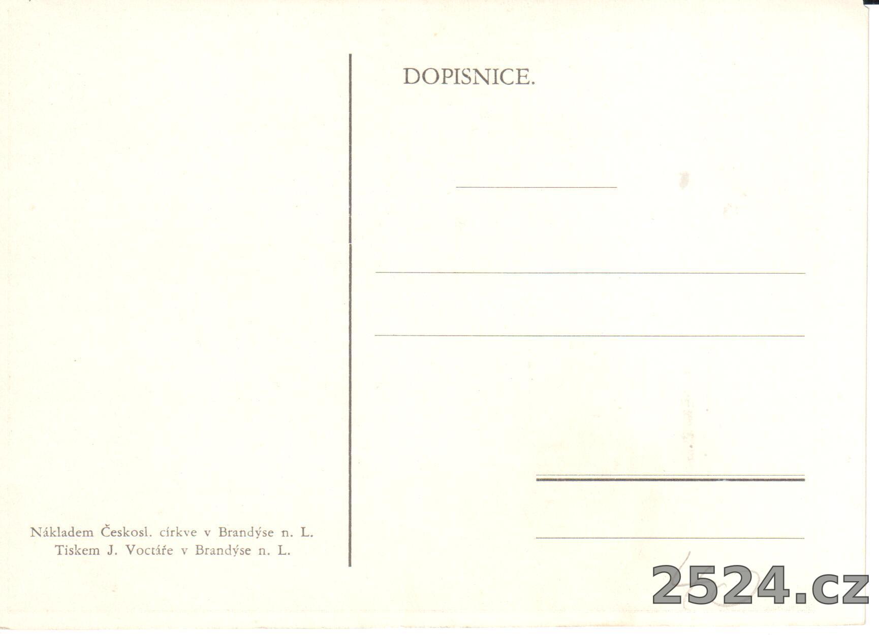 Vydavatel: Nákladem Československé církve v Brandýse n. L.; Tiskem J. Voctáře v Brandýse n. L.