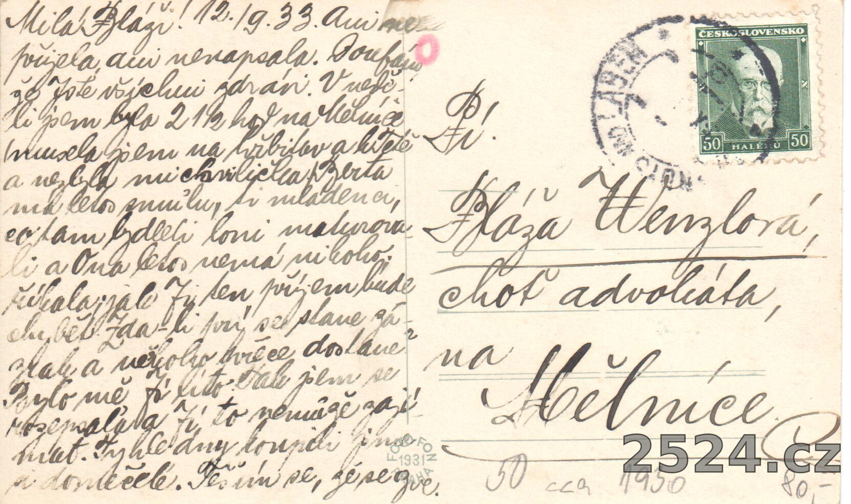 Popis: prošlá 1933; Obecná a měšťanská škola