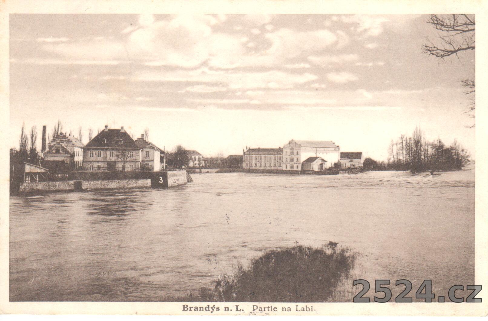 Popis: prošlá; pohled na jez z mostu, zvýšena vodní hladina