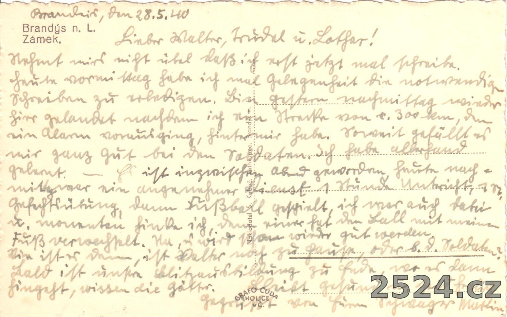 Popis: neprošlá, popsaná 1940; byla pravděpodobně odeslána dopisem