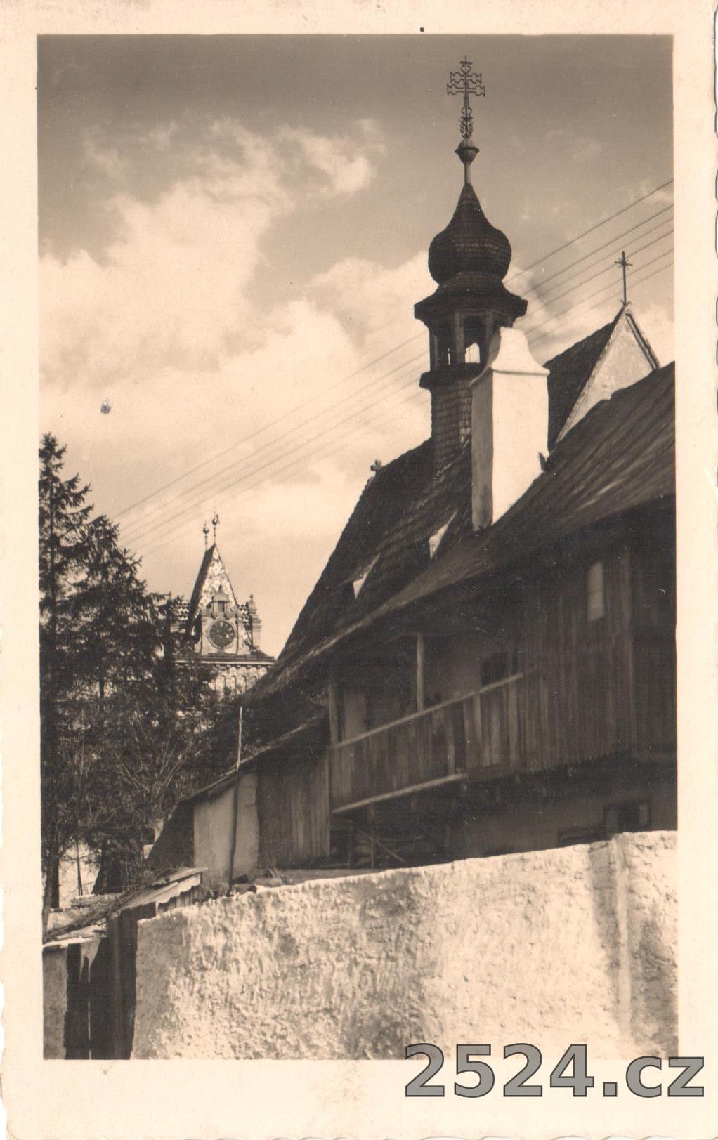Popis: prošlá 1941; pohled na zámek a kostel sv. Petra