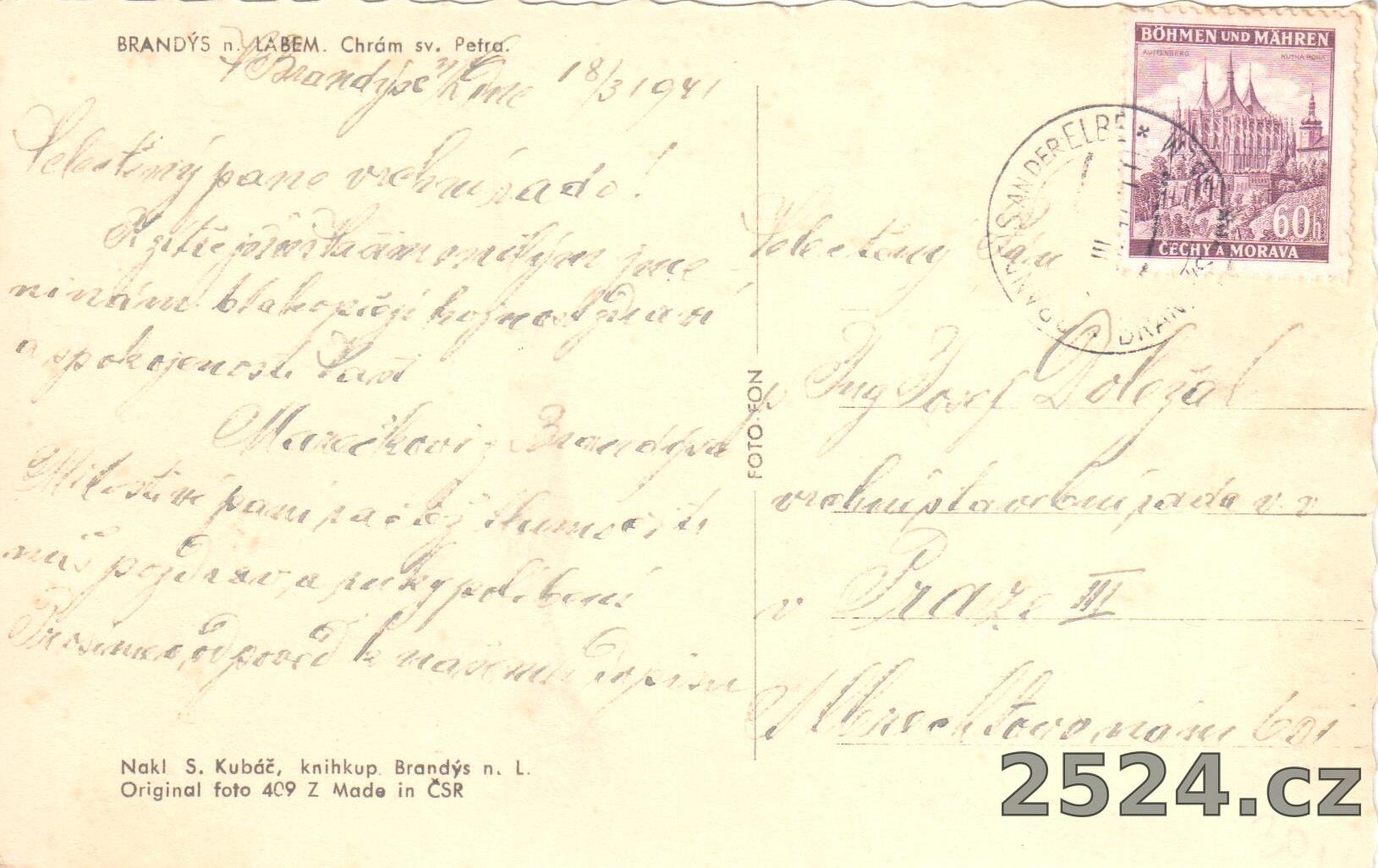 Vydavatel: Nakl. S. Kubáč, Brandýs n. L. Original Foto 409