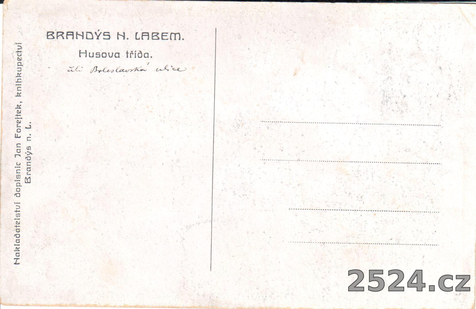 Vydavatel: Nakladatelství dopisnic Jan Forejtek, knihkupectví v Brandýse n. L.