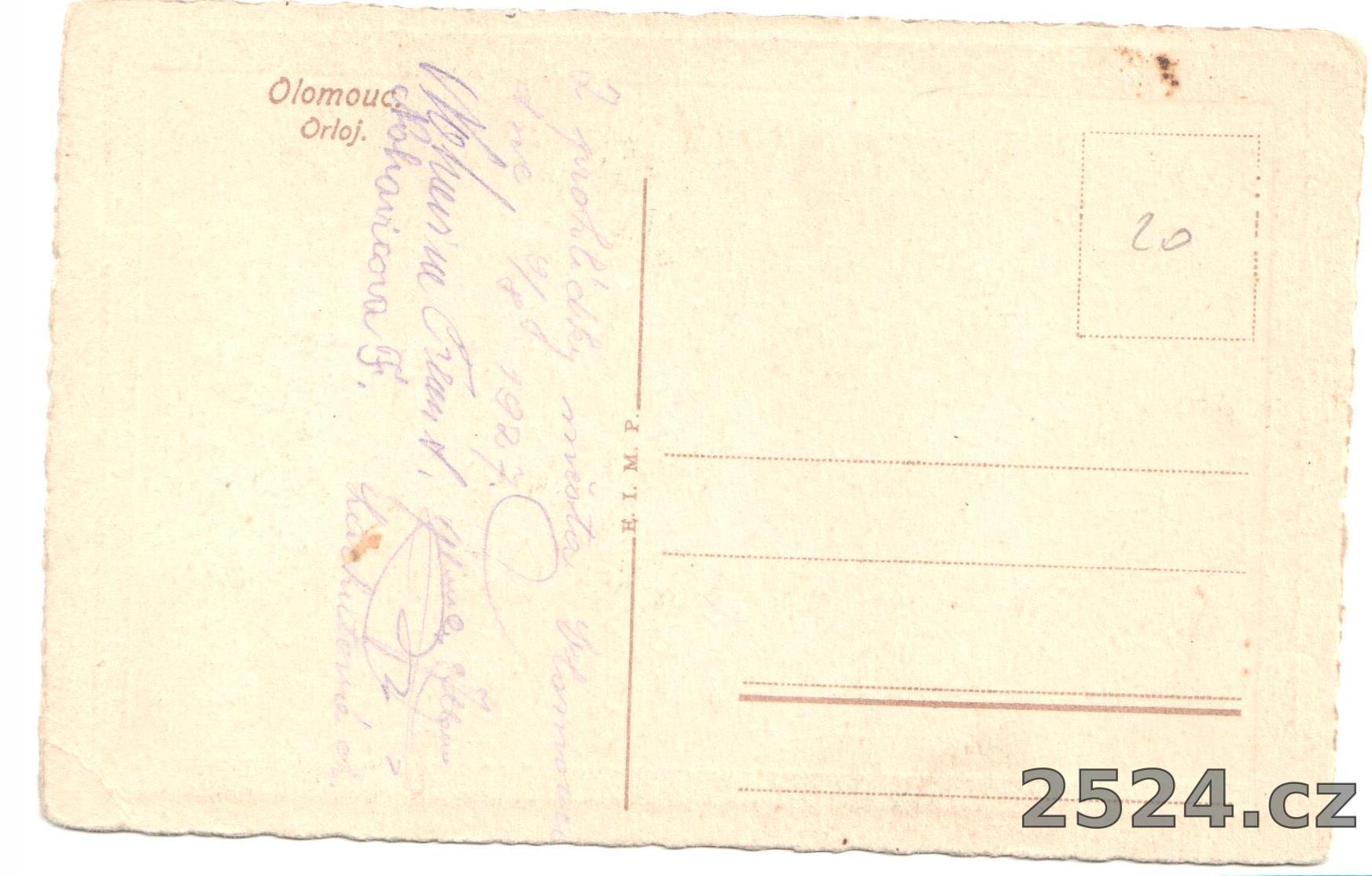 Popis: neprošlá, datace 9.8.1927