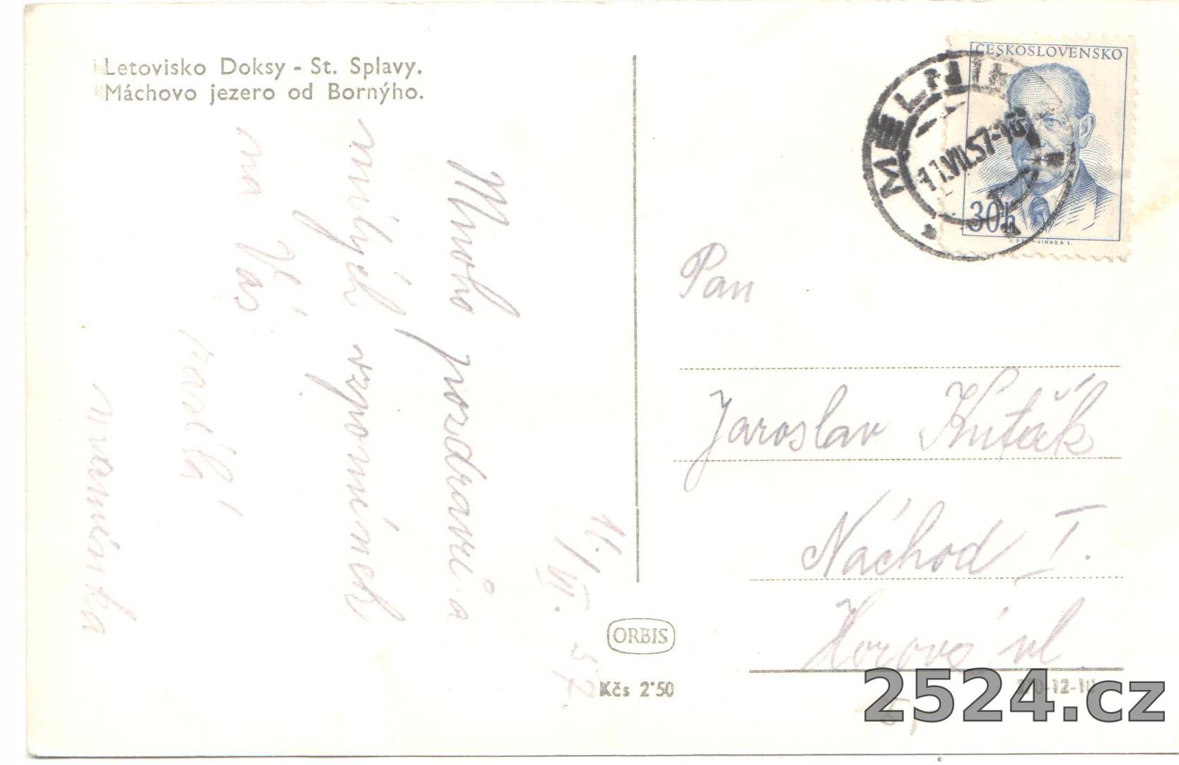 Popis: prošlý 1957; Máchovo jezero od Bornýho.