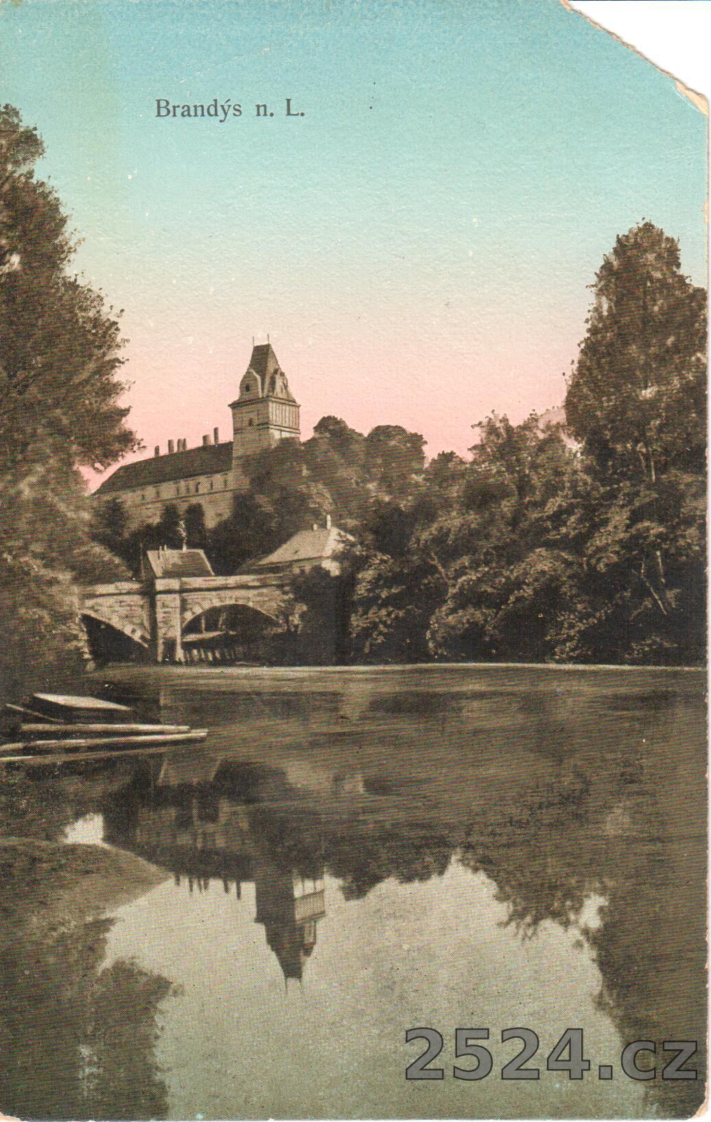 Popis: prošlá, pohled na zámek z mostu na Ostrůvek