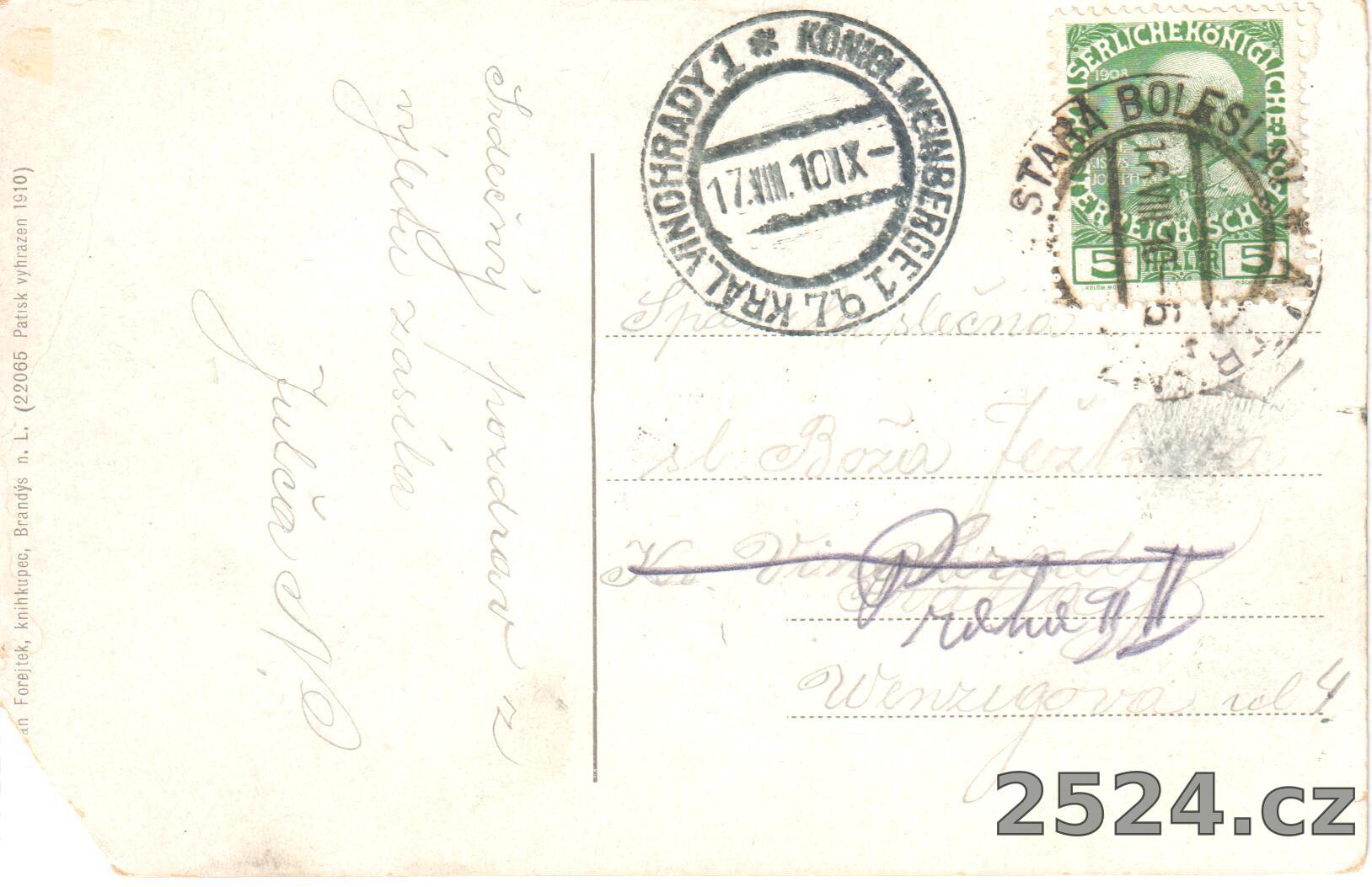 Vydavatel: Jan Forejtek, knihkupec, Brandýs n. L. - (22065 Patisk zakázán 1910)