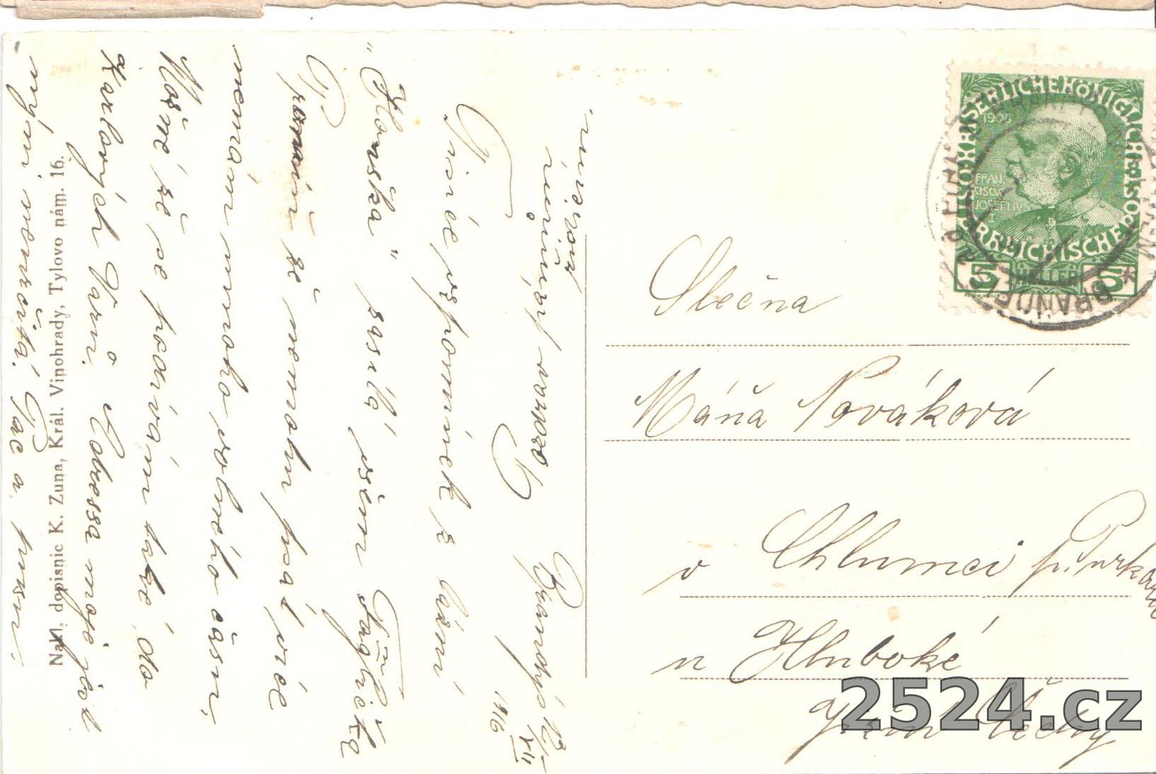 Vydavatel: Nakl. dopisnic K. Zuna Král. Vinohrady, Tylovo nám. 16