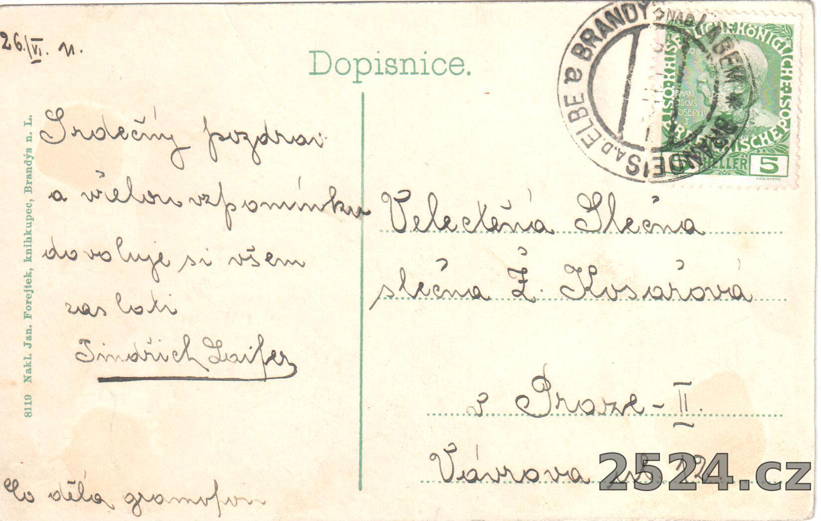 Vydavatel: Nakl. Jan. Forejtek, knihkupec, Brandýs n. L.