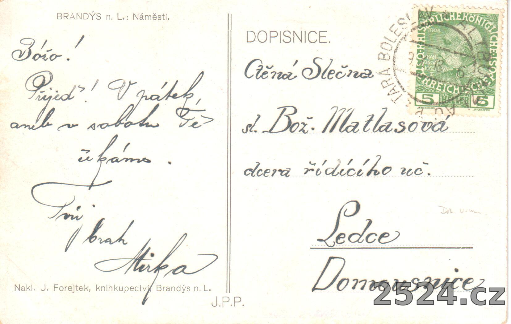Vydavatel: Nakl. J. Forejtek, knihkupectví, Brandýs n. L.