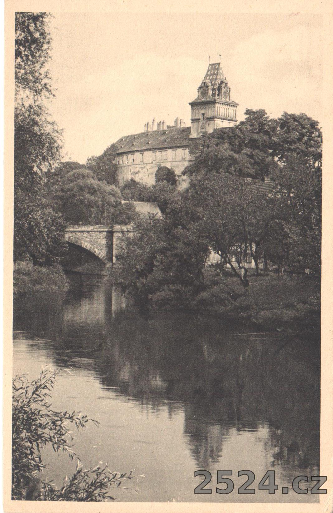 Popis: neprošlá; datovaná 3.6.1931; pohled na zámek z Ostrůvku