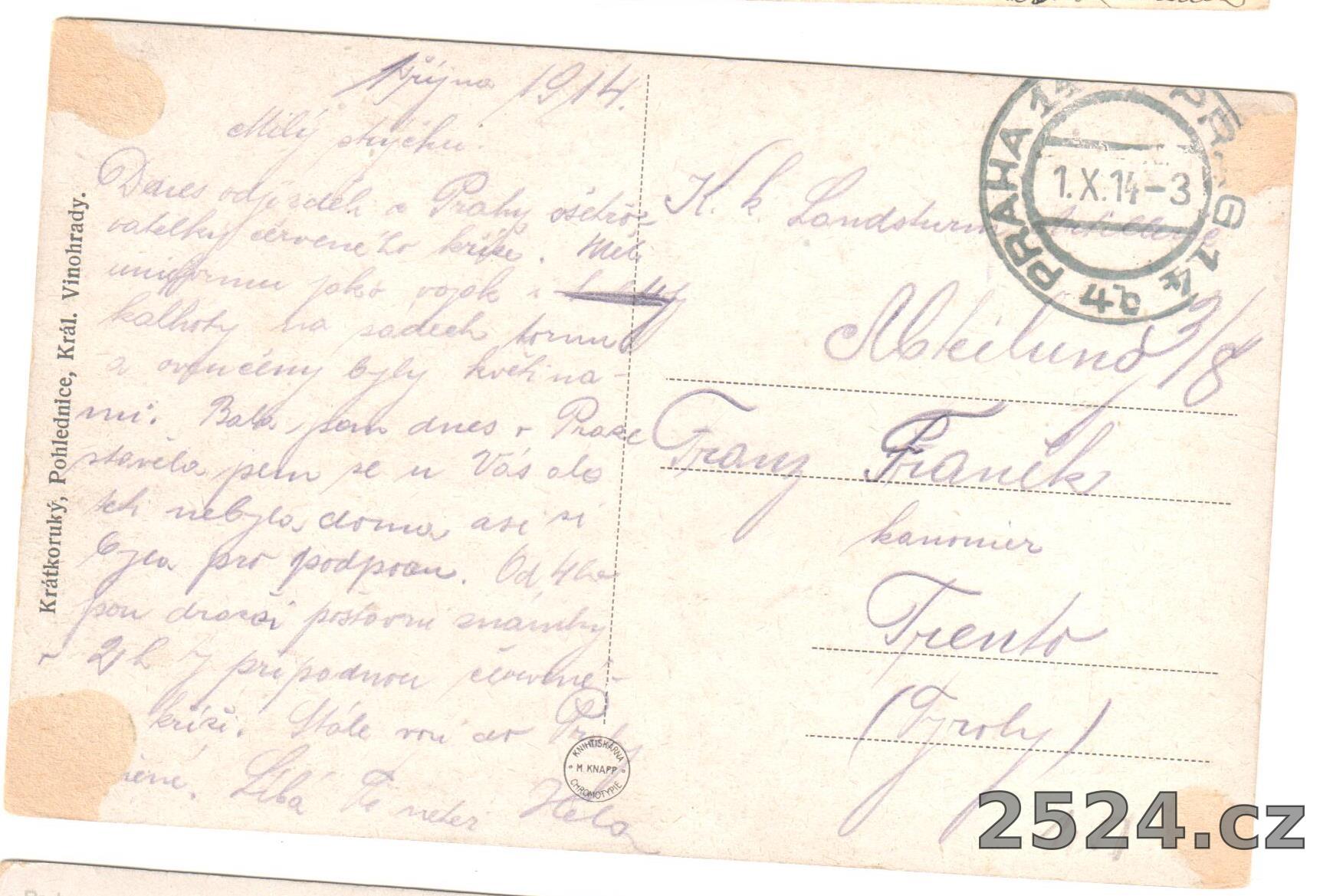 Popis: prošlá 1914; Knihtiskárna M. Knapp
