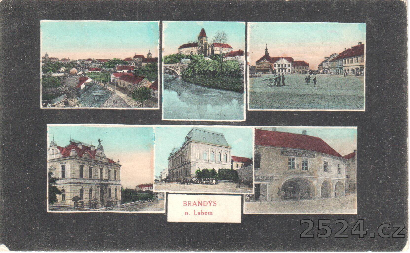 Popis: prošlá 1918; zobrazuje celkový pohled na město, zámek, náměstí, sokolovnu a Občanskou záložnu