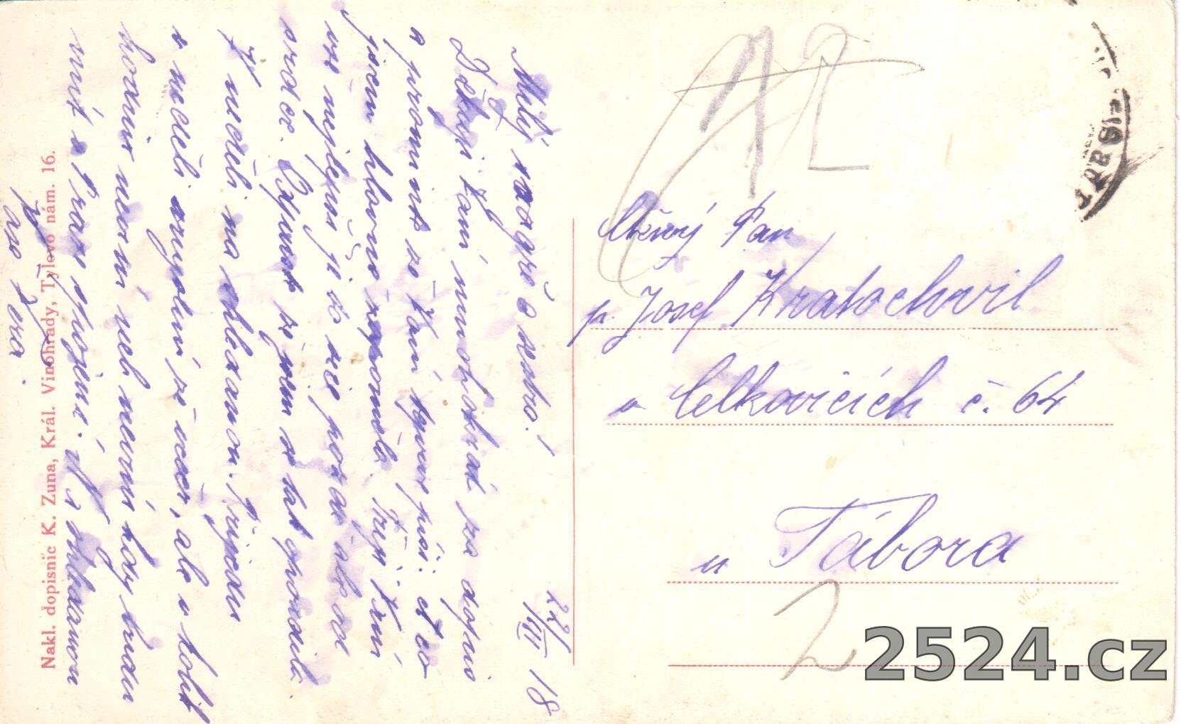 Vydavatel: Nakl. dopisnic K. Zuna Král. Vinohrady, Tylovo nám. 16