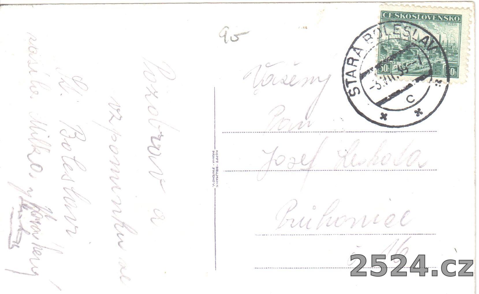 Popis: prošlá; 1939; kopie pohlednice původní litografie