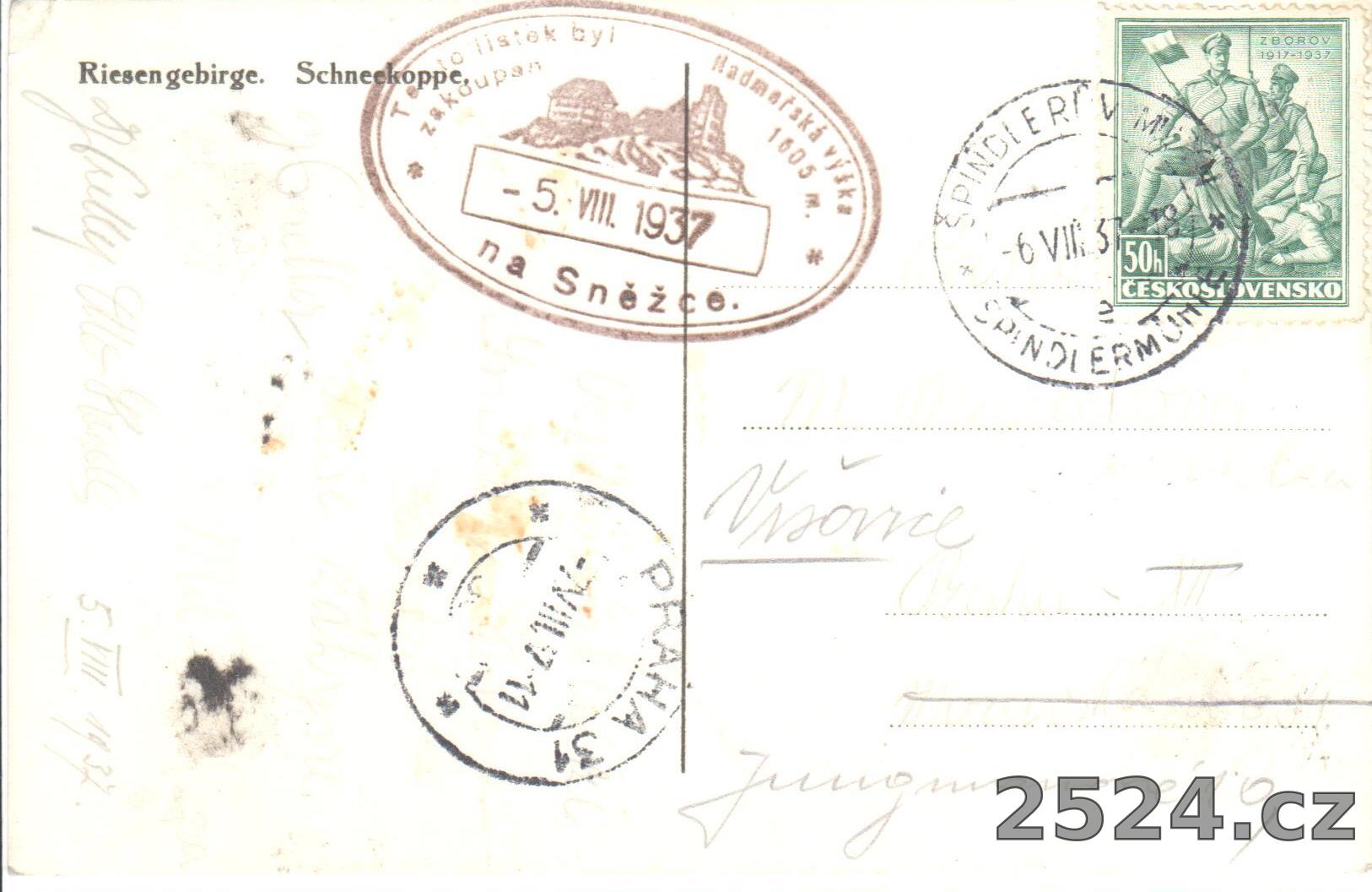 Popis: prošlá 1937; razítko z vrcholu